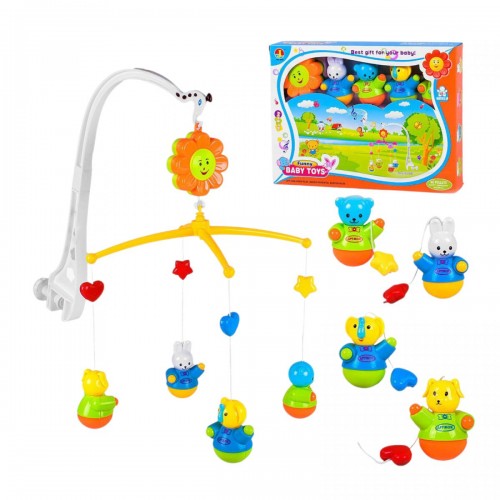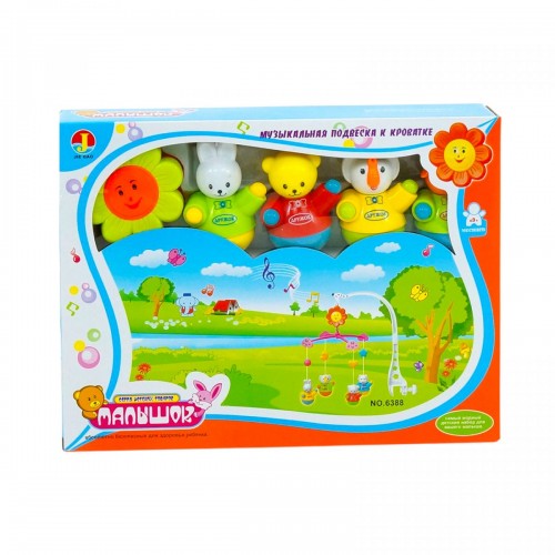 Красивая и яркая подвеска-карусель для детской кроватки. Имеет основу-цветок, на котором висят забавные погремушки-зверюшки и крепеж, который присоединяется к кроватке. Также имеет запускной механизм, благодаря которому каруселька начинает крутиться и звучит приятная успокаивающая мелодия.
