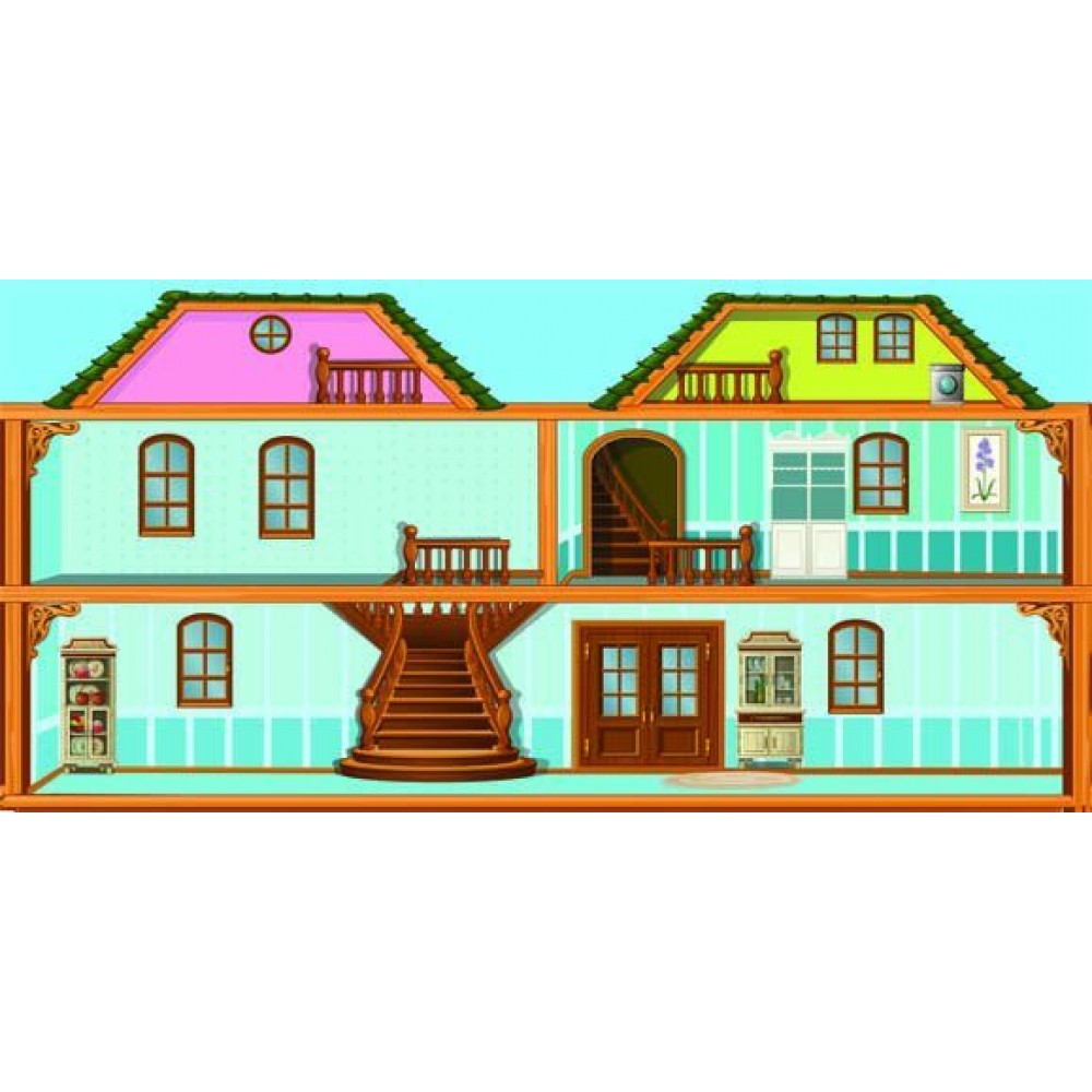 Книга "Многоразовые наклейки" представляет собой разворот с красочным фоном, на которые ребенок должен будет приклеивать наклейки, создавая собственные сценарии игры. _