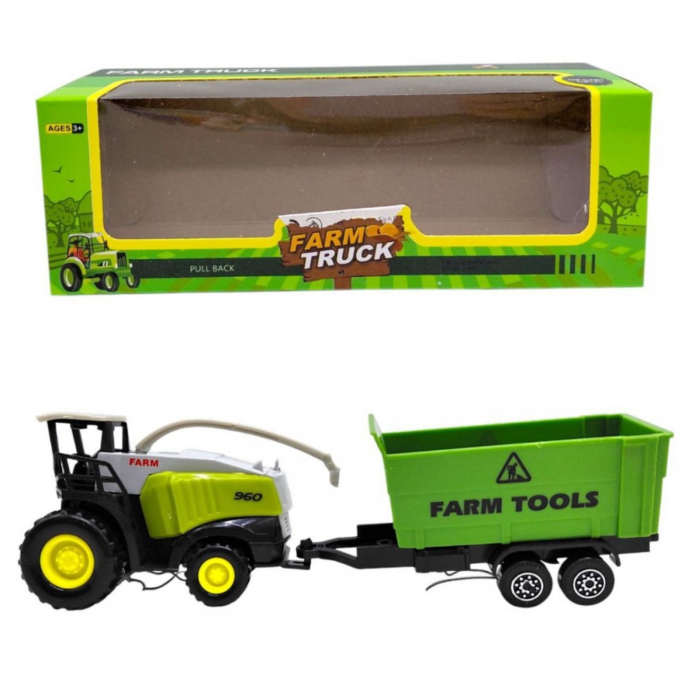 В комплекте предусмотрен прицеп, который дополняет игровой процесс и расширяет возможности сюжетных сцен на тему фермерского хозяйства. Игрушка подойдет для детей, интересующихся техникой, транспортом и тематикой сельского хозяйства.