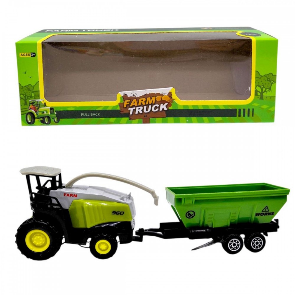 В комплекте предусмотрен прицеп, который дополняет игровой процесс и расширяет возможности сюжетных сцен на тему фермерского хозяйства. Игрушка подойдет для детей, интересующихся техникой, транспортом и тематикой сельского хозяйства.