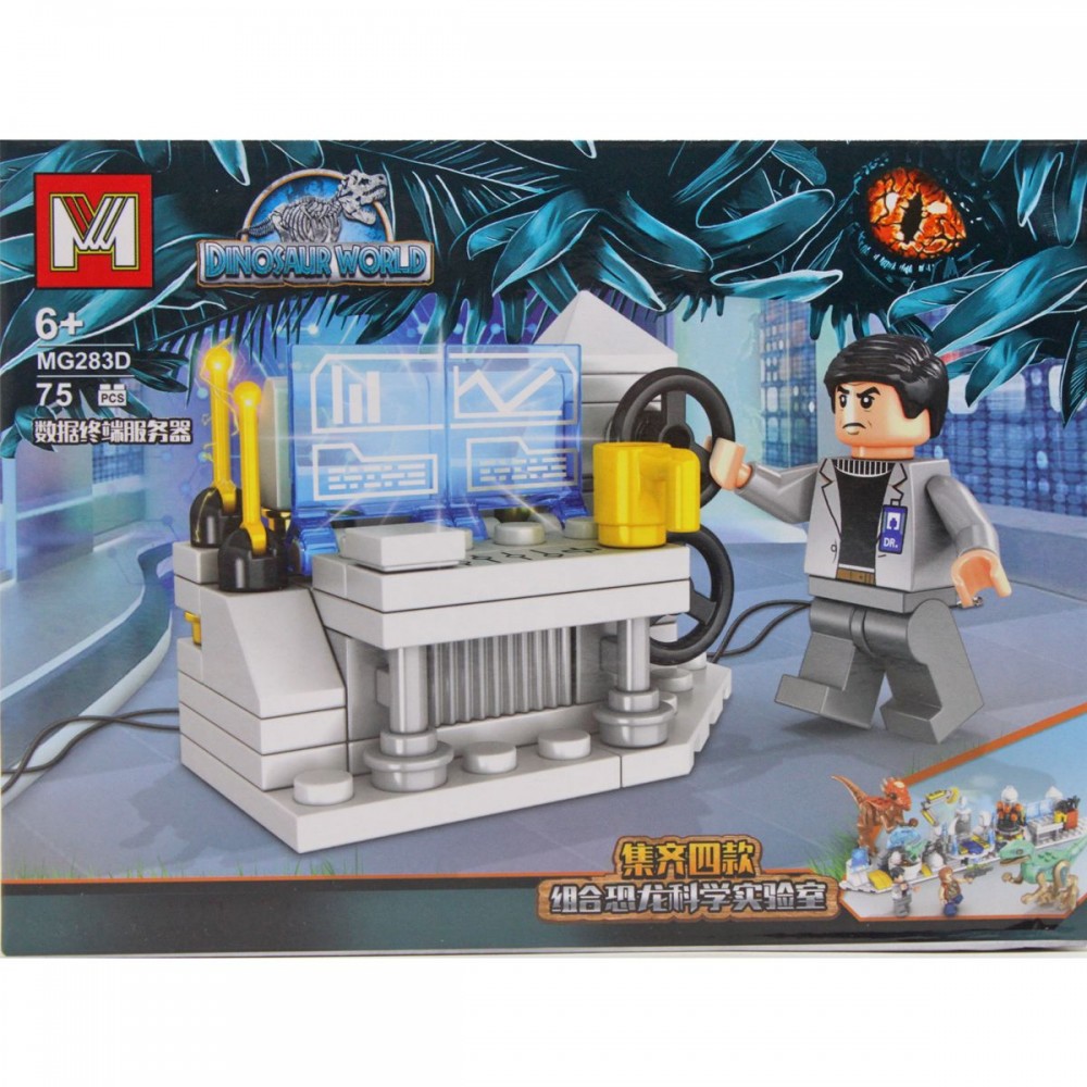 Набор конструктора "Мир юрского периода" (Dino), состоит из 75 элементов с помощью которых можно собрать фигурку ученого и часть лаборатории. Детали набора небольшого размера, предназначены для детей старше 6-ти лет. Комплект выполнен из пластика. Собрав все конструкторы серии, можно построить большую лабораторию.