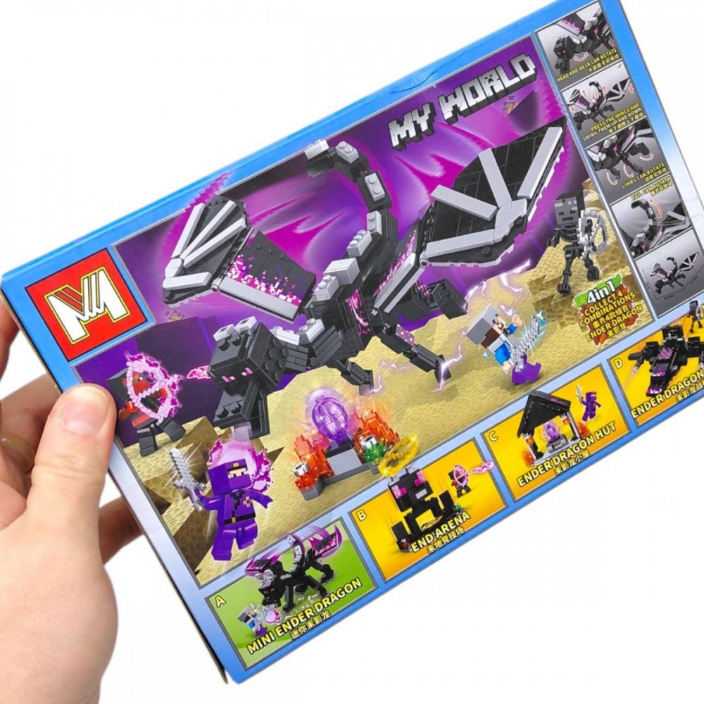 Конструктор в стиле популярного кубического мира позволяет создать тематическую игровую сцену с фантастическим персонажем и техникой. Детали выполнены в характерном блочном дизайне, что делает модель узнаваемой и интересной для детей, любящих приключенческие игры и сборку конструкторов.