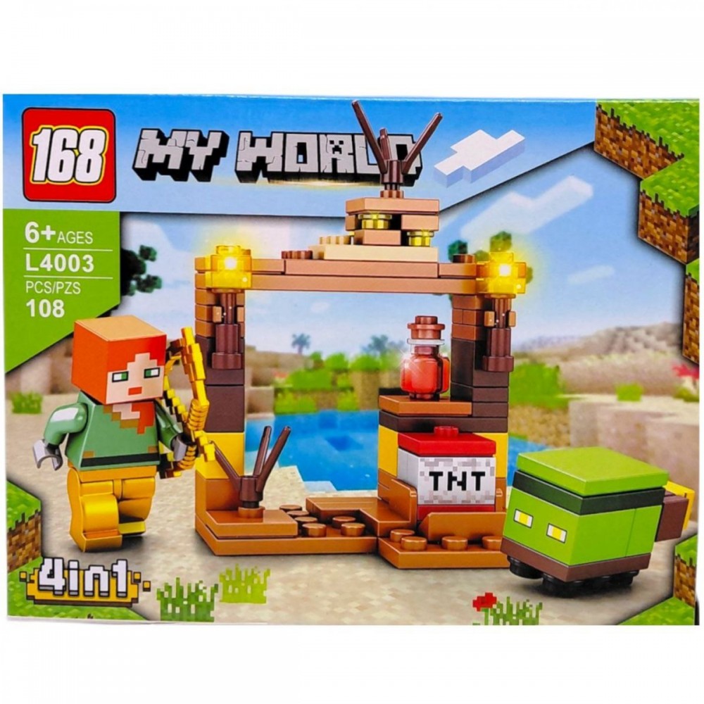 Конструктор в стиле популярной пиксельной игры позволяет ребенку воспроизвести свой игровой мир из блоков. Набор включает в себя детали для составления тематической сцены и фигурки персонажей, что делает игру еще более интересной и динамичной.