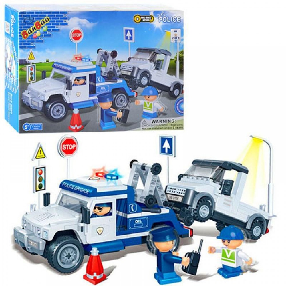 Конструктор из серии "Полиция" из 245 деталей. Можно построить полицейский эвакуатор и фигурку полицейского. Набор выполнен из качественного и прочного материала, внутри есть детальная инструкция по сборке. Для детей от 4-х лет.
