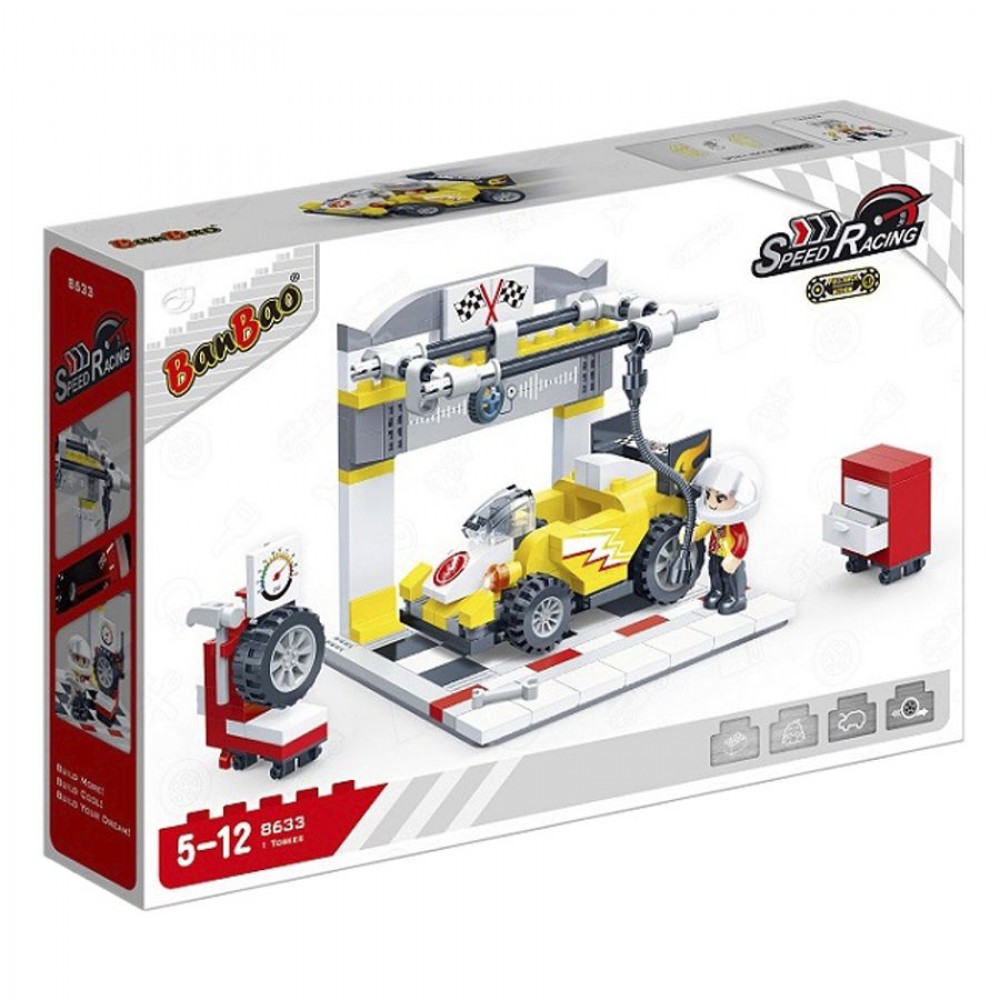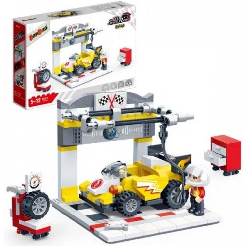 Конструктор серии "Скоростные гонки", с которым ребенок сможет собрать инерционную гоночную машинку, станцию для шиномонтажа и фигурку персонажа. В наборе есть все необходимые для сборки детали и подробная инструкция. Выполнено из прочного пластика. Для детей от 5-ти лет._