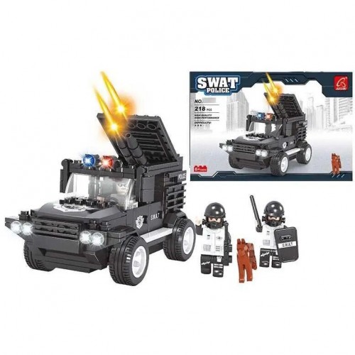 Конструктор "Спецназ" из 224 деталей, с которым ребенок сможет собрать большой полицейский автомобиль с выдвижным автоматом. В наборе есть все необходимые для сборки детали и подробная инструкция. Выполнено из прочного пластика. Для детей от 6-ти лет._