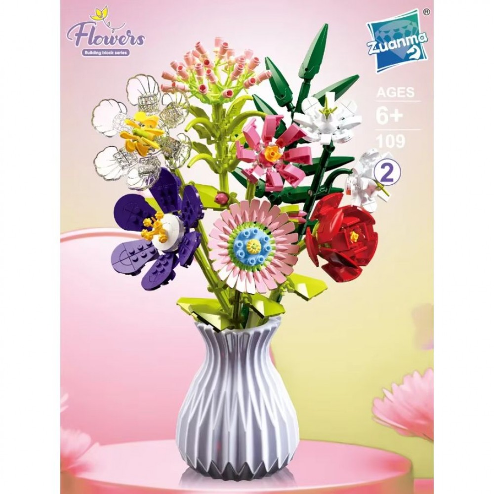 Конструктор в виде цветочной композиции. Размеры вазы, включенной в набор - 11х11х15 см. Игровой набор отлично детализирован, каждая его деталь максимально проработана. В комплекте с конструктором представлена пошаговая инструкция. Игра с конструкторами отлично развивает логическое мышление и мелкую моторику рук. Набор выполнен из качественных и безопасных материалов. Для детей от 6 лет.