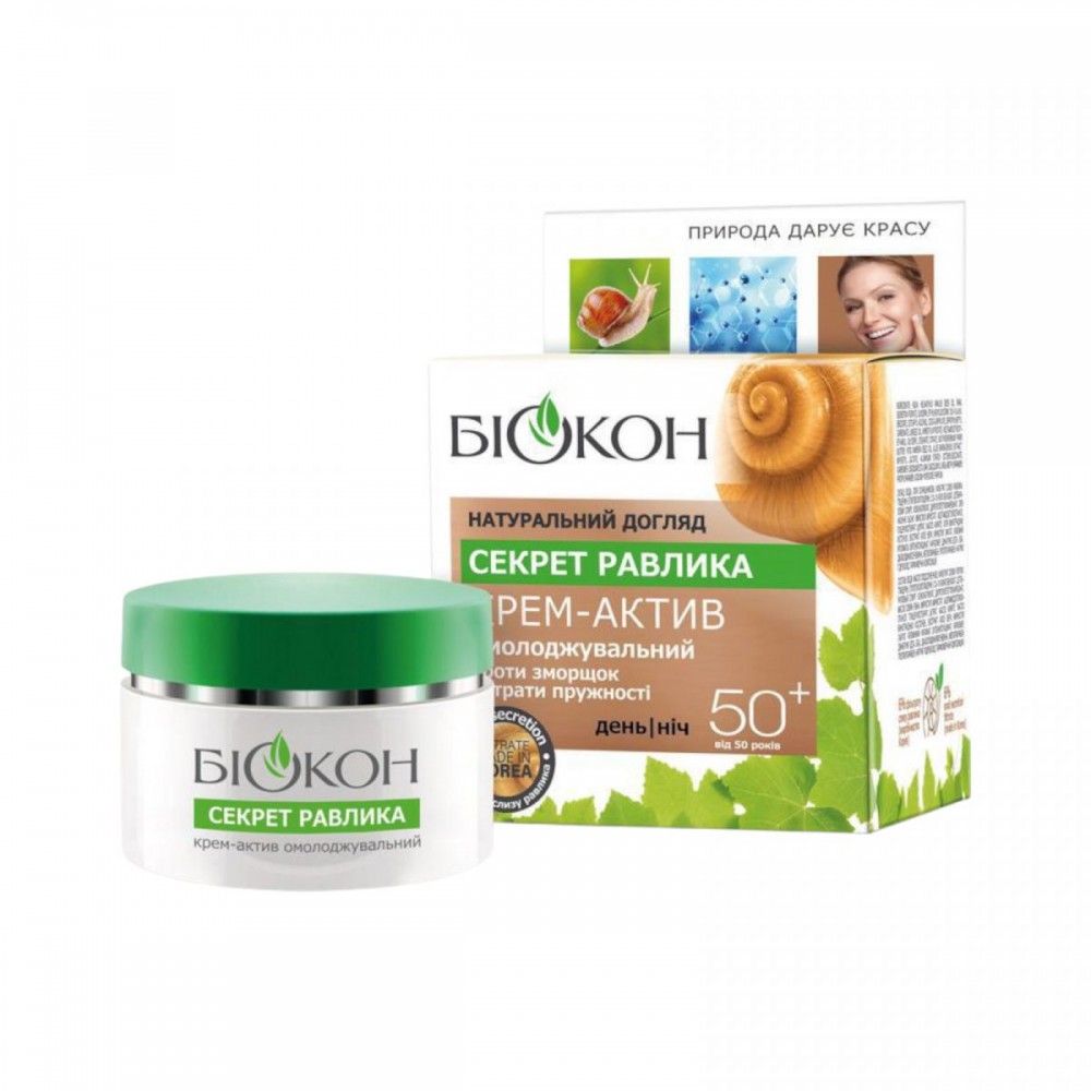 Крем-актив омолаживающий «Секрет улитки» из серии «Натуральный уход» — против морщин и потери упругости. Интенсивно увлажняет кожу, питает полезными веществами. Содержит высокую концентрацию фильтрата слизи улитки гигантской (Achatina fulica), оказывающей на кожу комплексное действие. Способствует уменьшению глубины морщин и их разглаживанию, предотвращает появление новых морщин. Создает условия, необходимые для восстановления и самоомоложения кожи, способствует замедлению процессов старения.