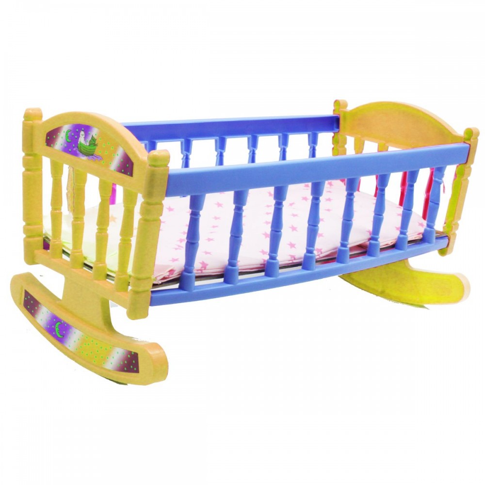 Складная детская пластиковая кроватка. Состоит из 5 деталей. Также в комплекте идут простынка, подушечка (наполнитель - синтепон), и одеяло (текстиль, нейлоновое кружево). Набор упакован в плотный пакет. Размер собранной кроватки - 18х16х36 см. Размер спального места - 32х14,5 см.