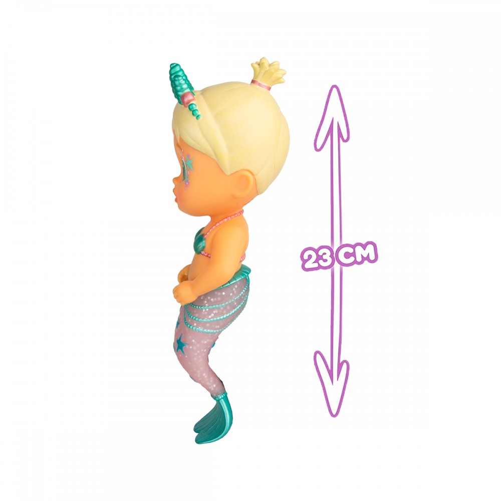 - У куклы красивый перламутровый хвостик с блесточками и очаровательная тиара.