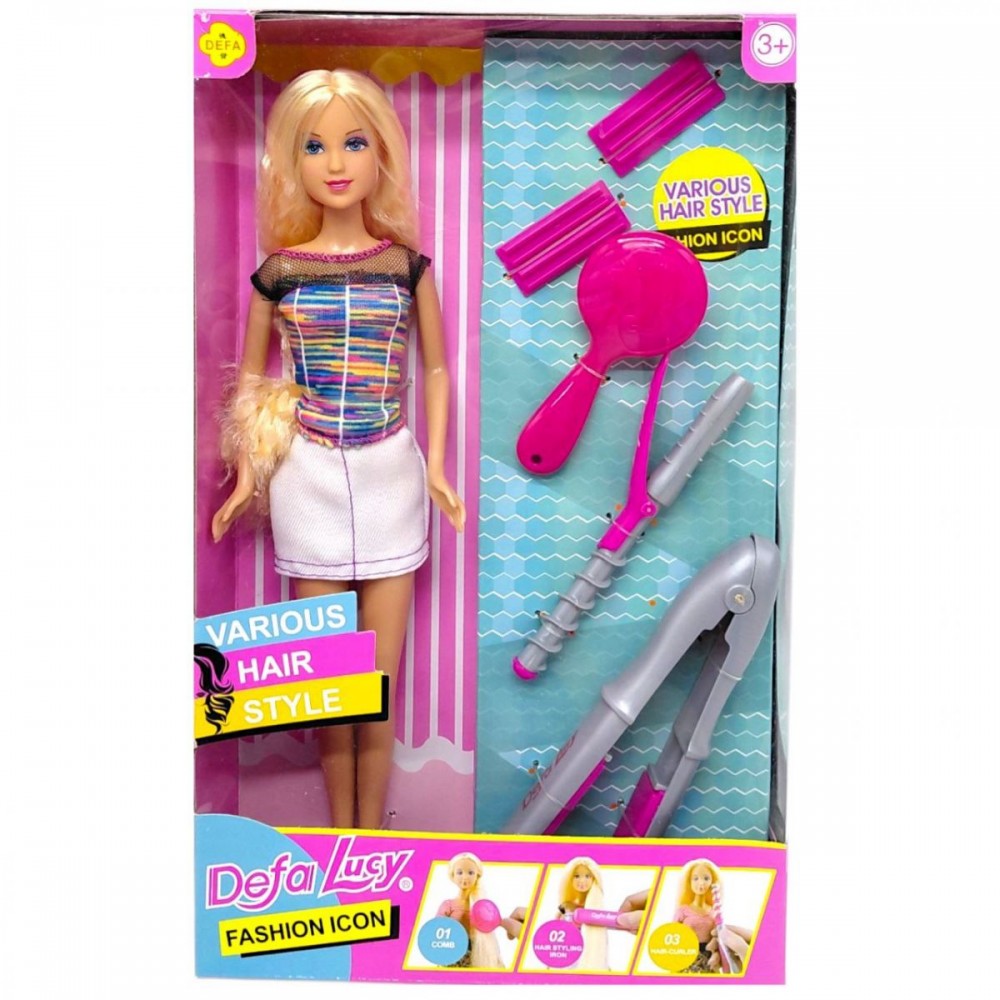 Кукла Defa высотой 30 см с набором стилиста предназначена для творческих сюжетных игр. Ребёнок может придумывать новые образы, укладывать волосы куклы и воспроизводить сценки из салона красоты. Игрушка способствует развитию фантазии, творчества и ролевых навыков. Дополнительные аксессуары делают игру более разнообразной и увлекательной.