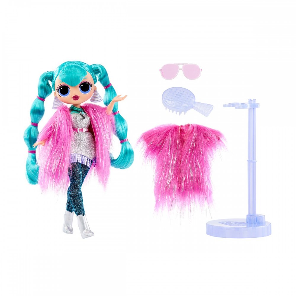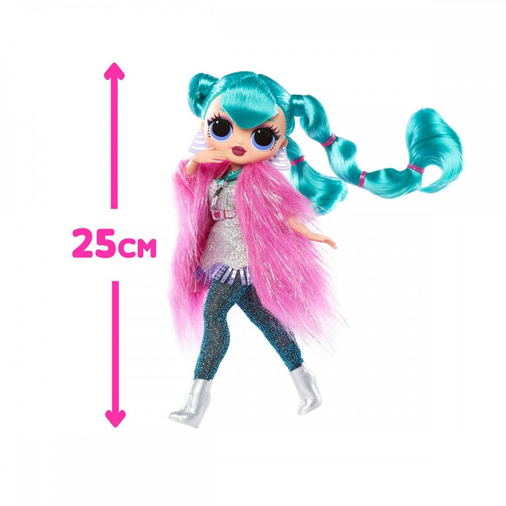 Яркая куколка LOL в стильном наряде и с множеством модных аксессуаров. Высота куклы - 25 см. Имеет подвижные суставы в руках, куколку можно легко ставить в разные позы. Имеет красивые густые волосы, которые можно заплетать в разнообразные прически. В наборе также есть подставка, которую можно использовать, как стульчик.
