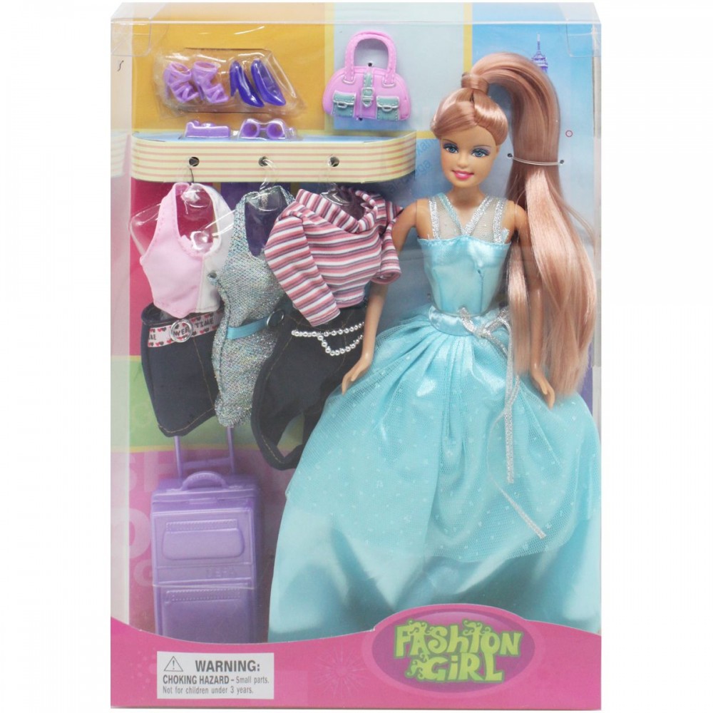 Кукла Люси, которая готовится к большому путешествию. Одета в красивое платье, а с собой имеет три сменных наряда и аксессуары (две пары туфель, фотоаппарат, бинокль и сумка). Также у куколки есть большой дорожный чемодан. Высота куклы: 29 см.