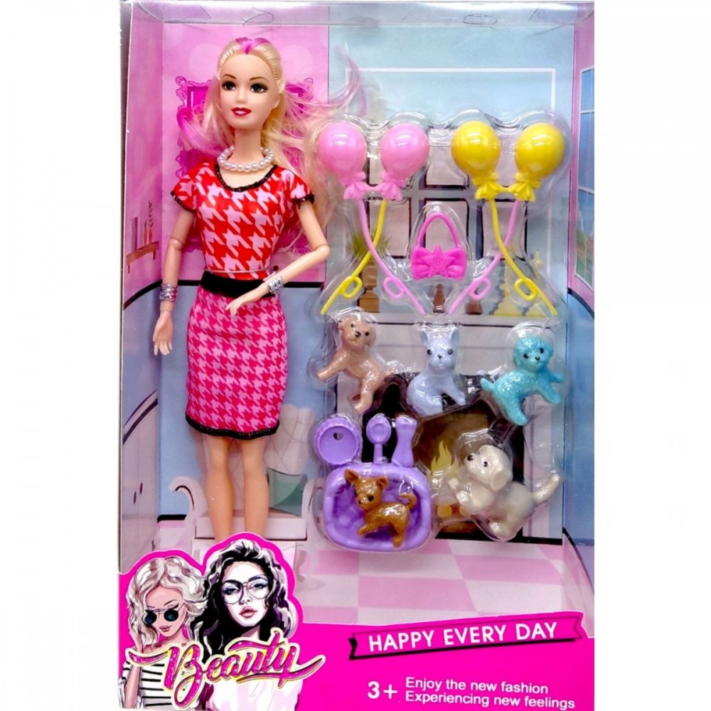 Кукла – 1 шт, Фигурки животных – 5 шт, Аксессуары – набор