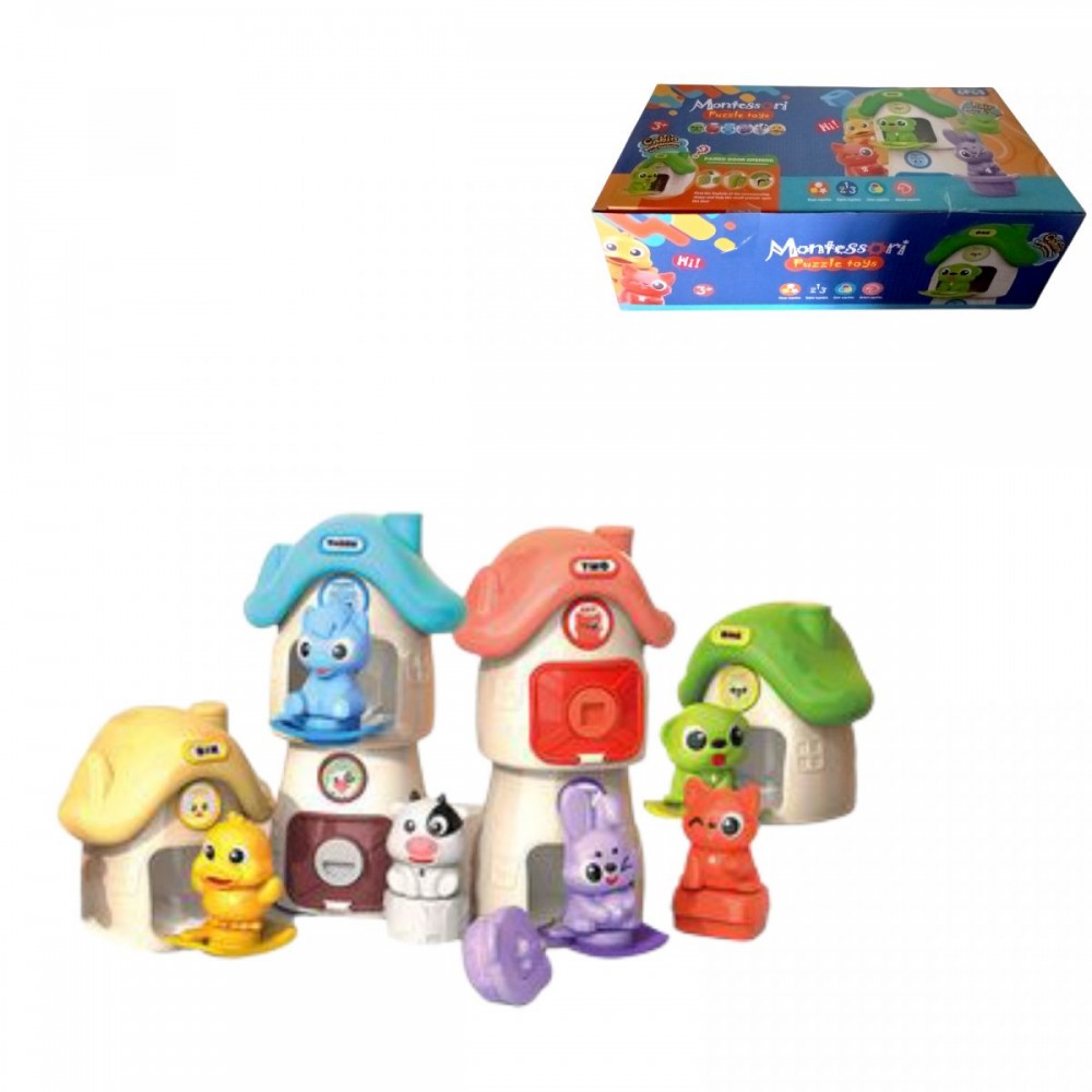 Интернет-магазин eToys предлагает вашему вниманию товар "Логическая игра Монтессори, 6 домиков, размер 10х7.5х10 см, 6 животных, цвета, названия, цифры, надписи на английском языке, открывается дверца, в коробке" по цене 885 грн..