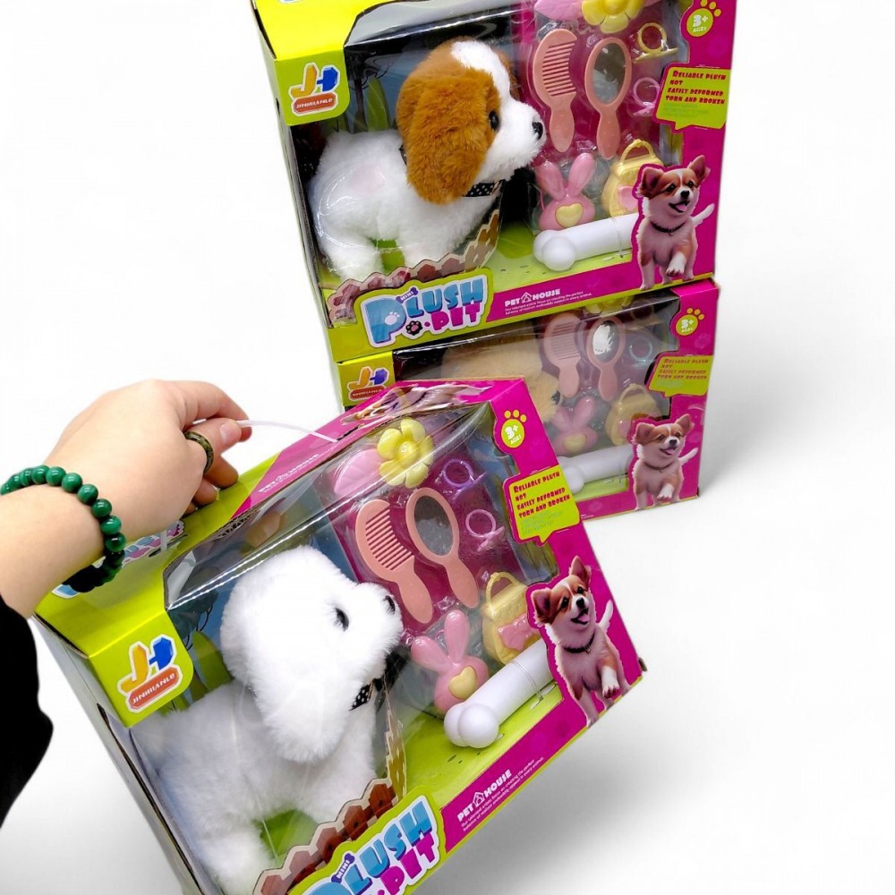 Интерактивная собачка "Plush Pet" - мягкая игрушка, которая точно понравится малышам! Щенок умеет ходить и лаять, что делает игру еще интереснее. В наборе вы найдете косточку и разнообразные аксессуары (сумочки, кольца, гребешки и т.д.), предназначенные как для самой собачки, так и для ребенка.