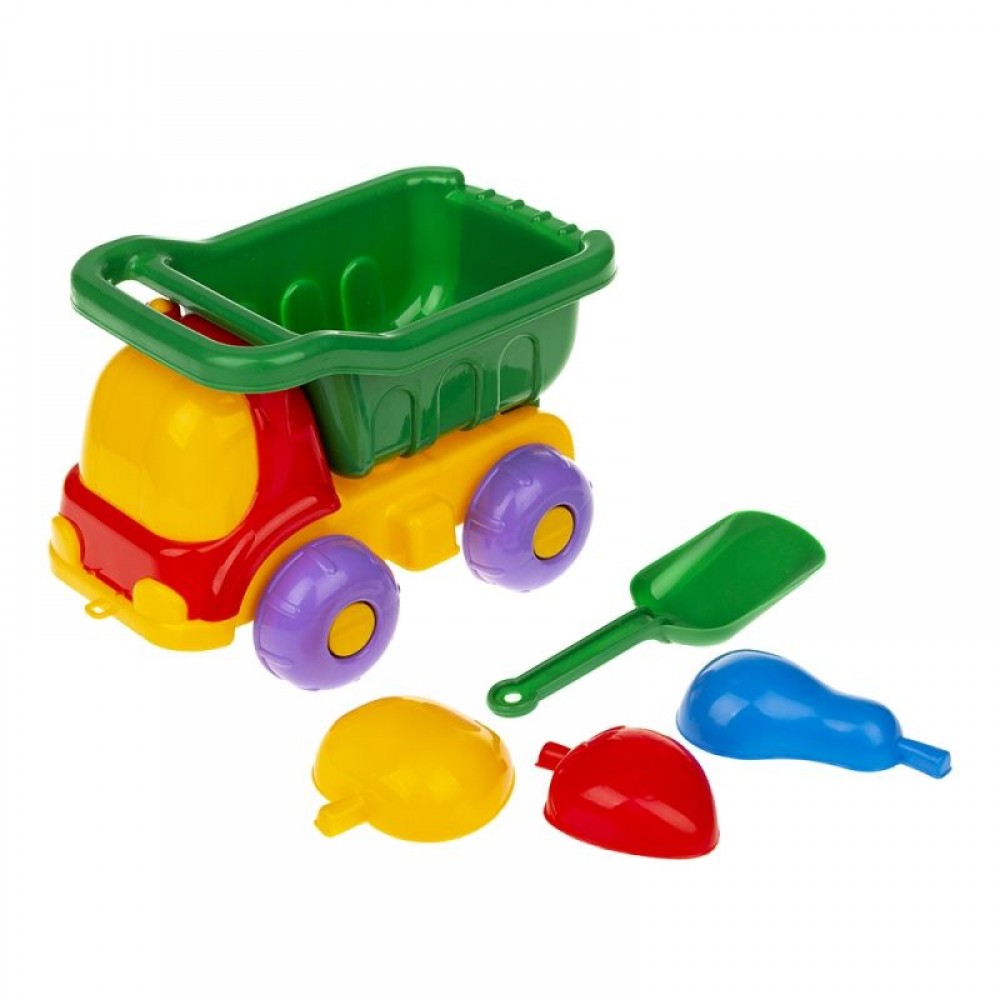 Машинка "Пчелка" с песочным набором. В комплект входит: машинка самосвал с кузовом, лопатка и 3 пасочки. С этим набором ребёнок сможет играть как дома, так и на улице. Выполнен из качественного пластика. Для детей от 3-х лет.