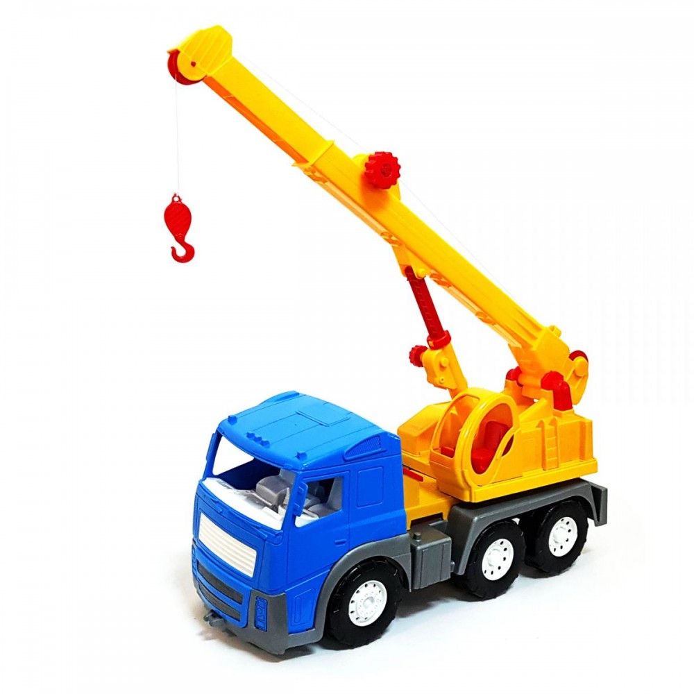 Машина строительная "Автокран Акрос". Имеет подвижные элементы: башня крана, стрела (поднимается, опускается, выдвигается), барабан. 3 механизма управления: подъем стрелы, выдвижение стрелы, регулировка "тросов". Высокая детализация, качественный пластик._