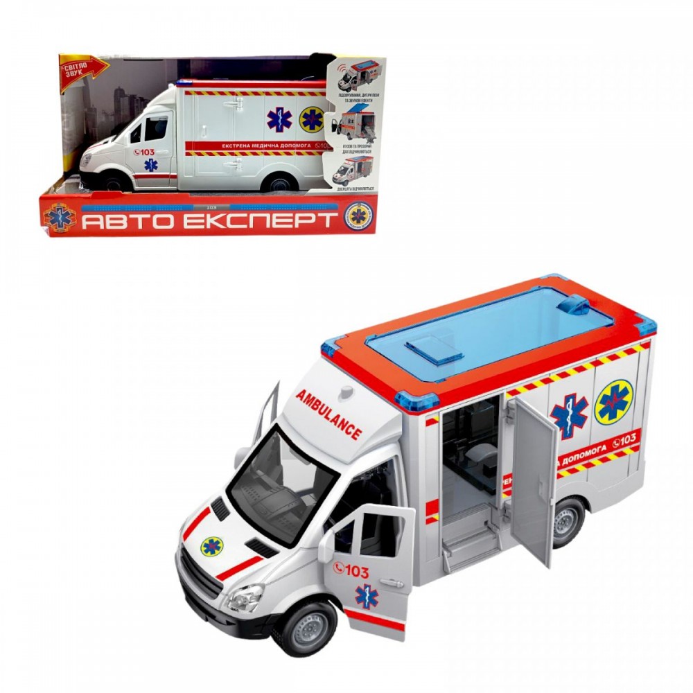 Интернет-магазин eToys предлагает вашему вниманию товар "Машинка "Скорая помощь", ОСВУЧ УКР ЯЗЫКОМ, инерция, звук, подсвеч, стихи, песни, двери, и крыша открываются, в коробке" по цене 668 грн..