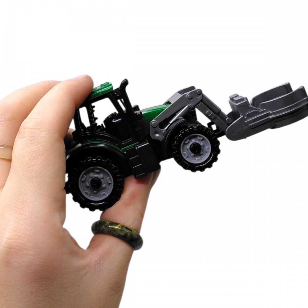 Машинка Трактор с ковшом, 10 см — компактная игрушка, идеально подходящая для игр дома и на улице. Оснащена подвижным ковшом, который делает игру реалистичнее и увлекательнее. Яркий дизайн и прочный пластик обеспечивают долговечность и интерес ребенка к спецтехнике.