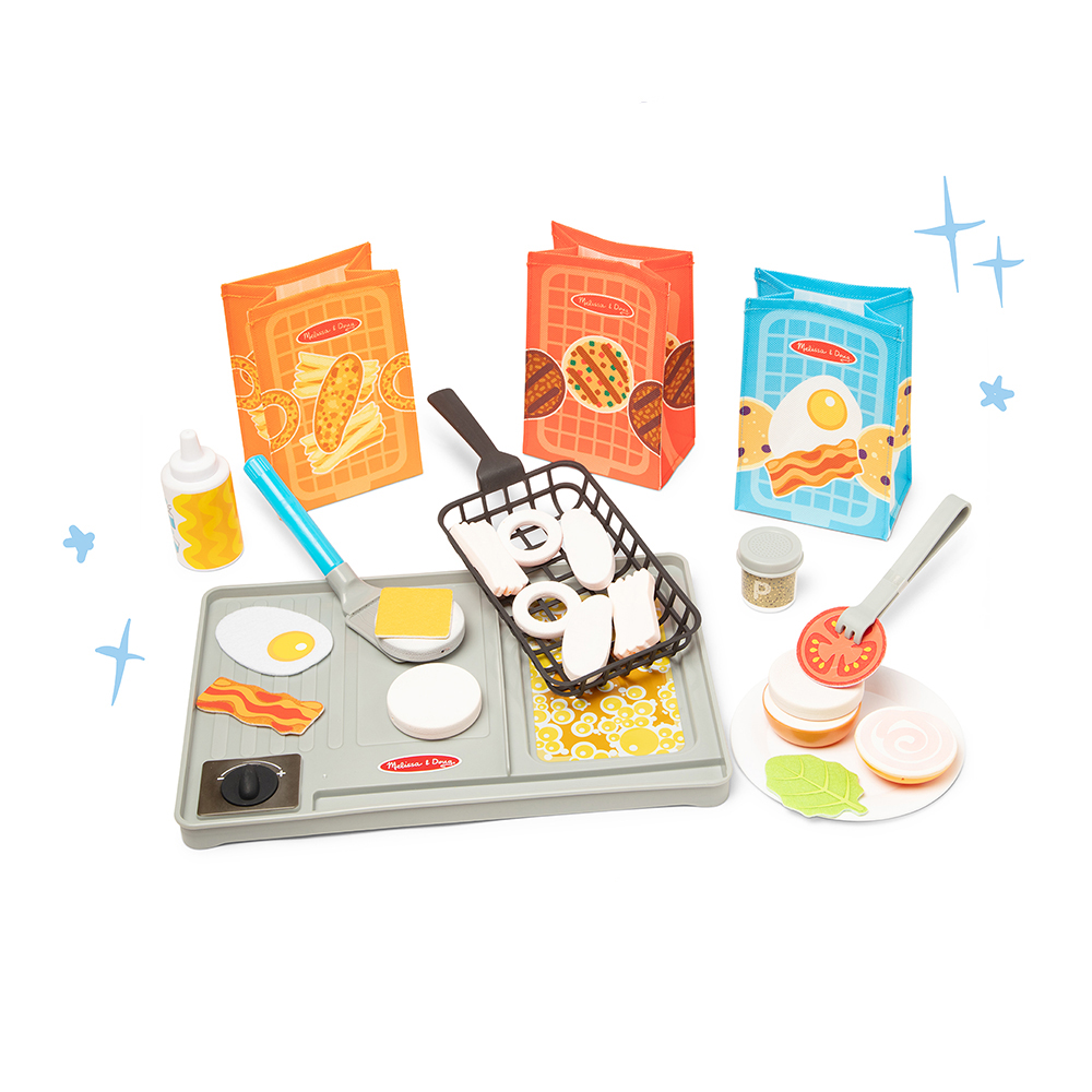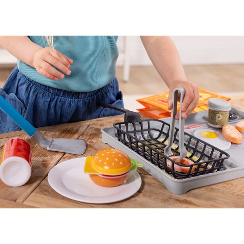Приготовьтесь к яркой и вкусной игре с "Набором для гриля" от Melissa & Doug. Water WOW, с которым ребёнок сможет «готовить» любимые блюда с помощью воды! Просто намочите продукты — и увидите, как игрушечная еда меняет цвет в процессе «приготовления». Переворачивайте «еду» на гриле, нажимайте лопаткой, и вода «приготовит» блюдо. Положите куриные наггетсы, кольца лука или картофель фри в корзину — и опустите во фритюрницу. Даже булочки меняют внешний вид, когда на них попадает «кетчуп» или «горчица»! В набор входят 27 предметов: ингредиенты для бургеров, кухонные принадлежности и 3 мягких пакетика для «еды на вынос» + двусторонняя многоразовая карточка-задание. Melissa & Doug. Water WOW: Игровой набор «Набор для гриля» — это яркий набор для маленьких поваров от 3 до 7 лет, которые обожают готовить и исследовать мир в процессе игры!