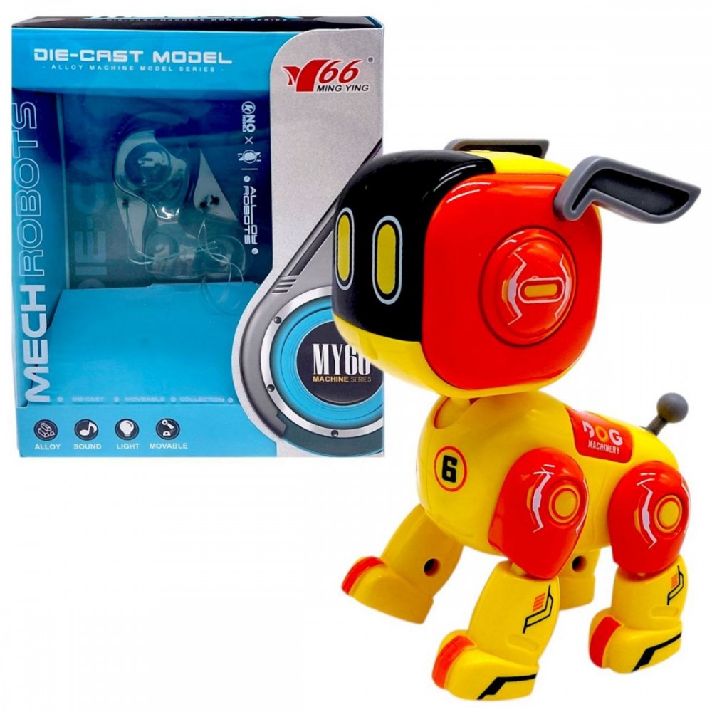 Игрушечная собачка выполнена в виде механической модели с сочетанием пластика и металла. Оснащен световыми и звуковыми эффектами, что делает игру более увлекательной.
