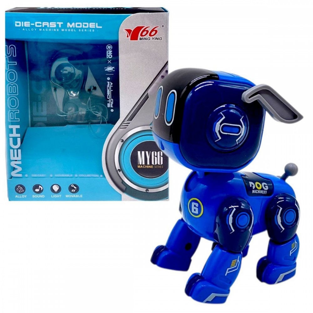 Металлическая собачка - это интерактивная игрушка в современном механическом стиле с эффектами света и звука. Яркий синий корпус с металлическими элементами делает модель привлекательной и увлекательной для активной игры.