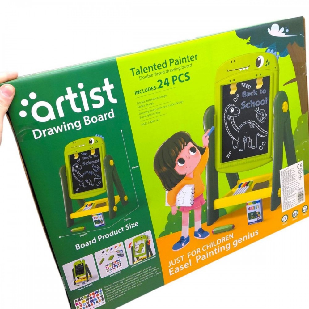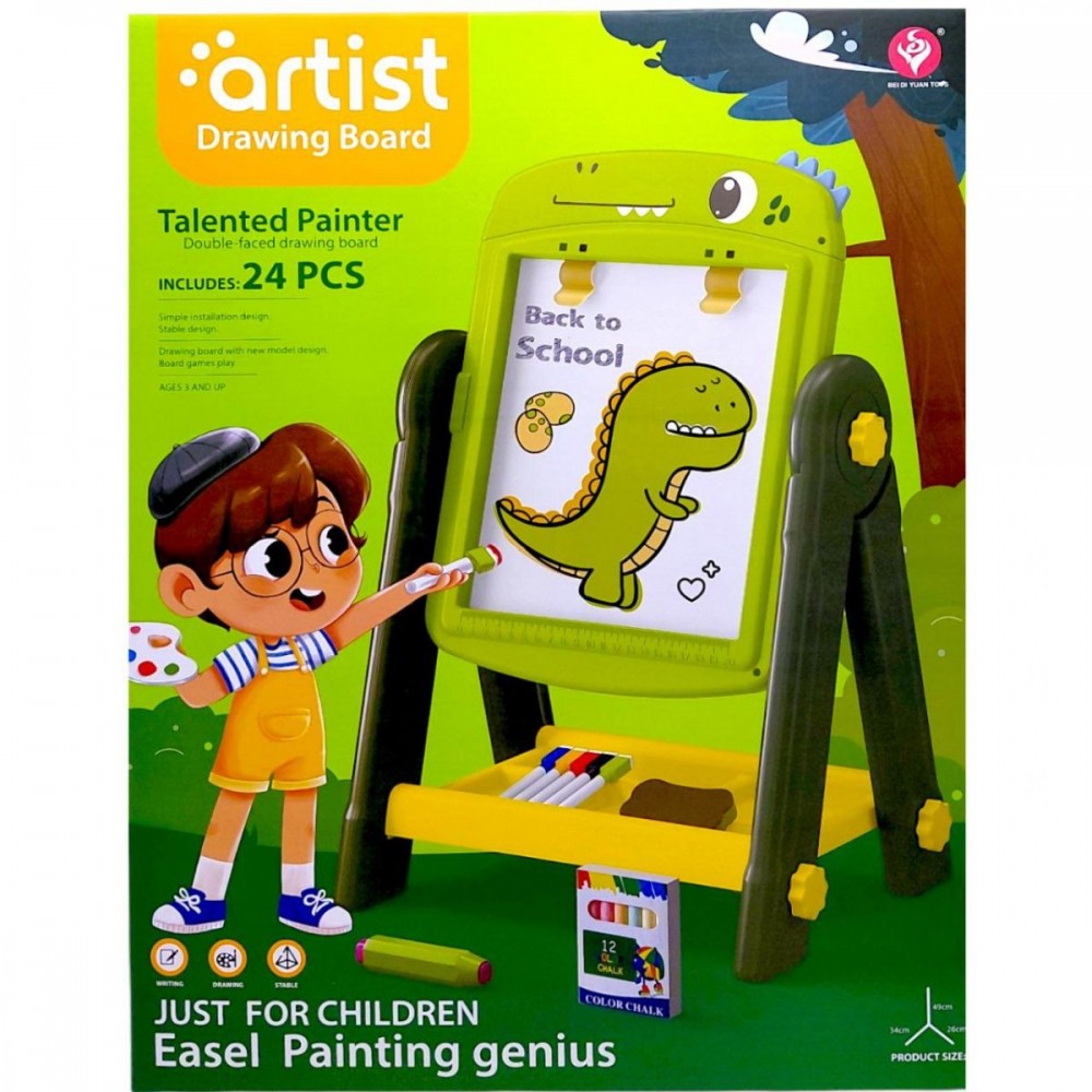 Набор позволяет рисовать, писать и создавать разные творческие работы. Яркий дизайн делает мольберт привлекательным для детей, а продуманная конструкция помогает поддерживать порядок во время игры или занятий.
