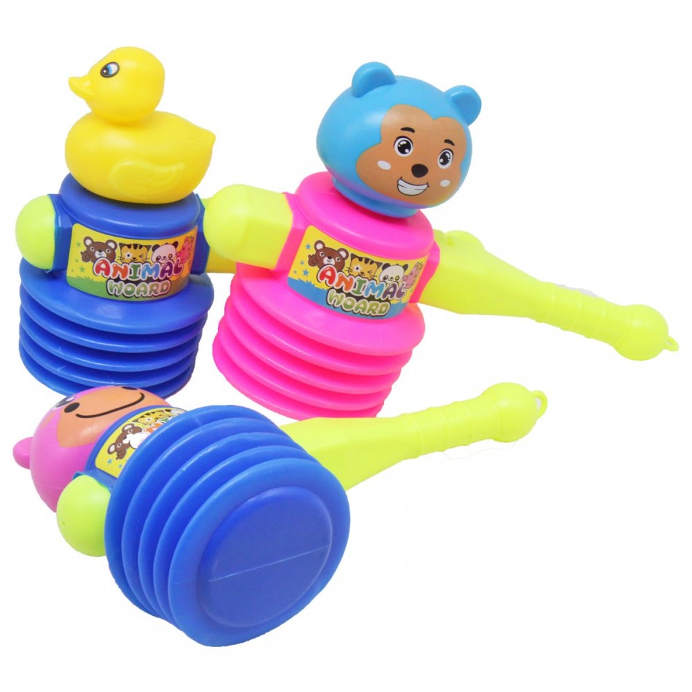 Яркий пластиковый молоточек-пищалка для самых маленьких. Молоточек пищит, если бить им о поверхность или об руку. Имеет удобную ручку, за которую малышу удобно держать игрушку. Выполнен в виде милой зверушки. Размер молоточка - 17 х 24 х 9 см. Разные виды в ассортименте.