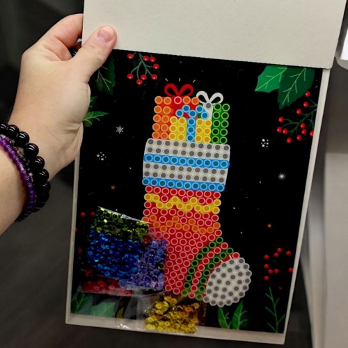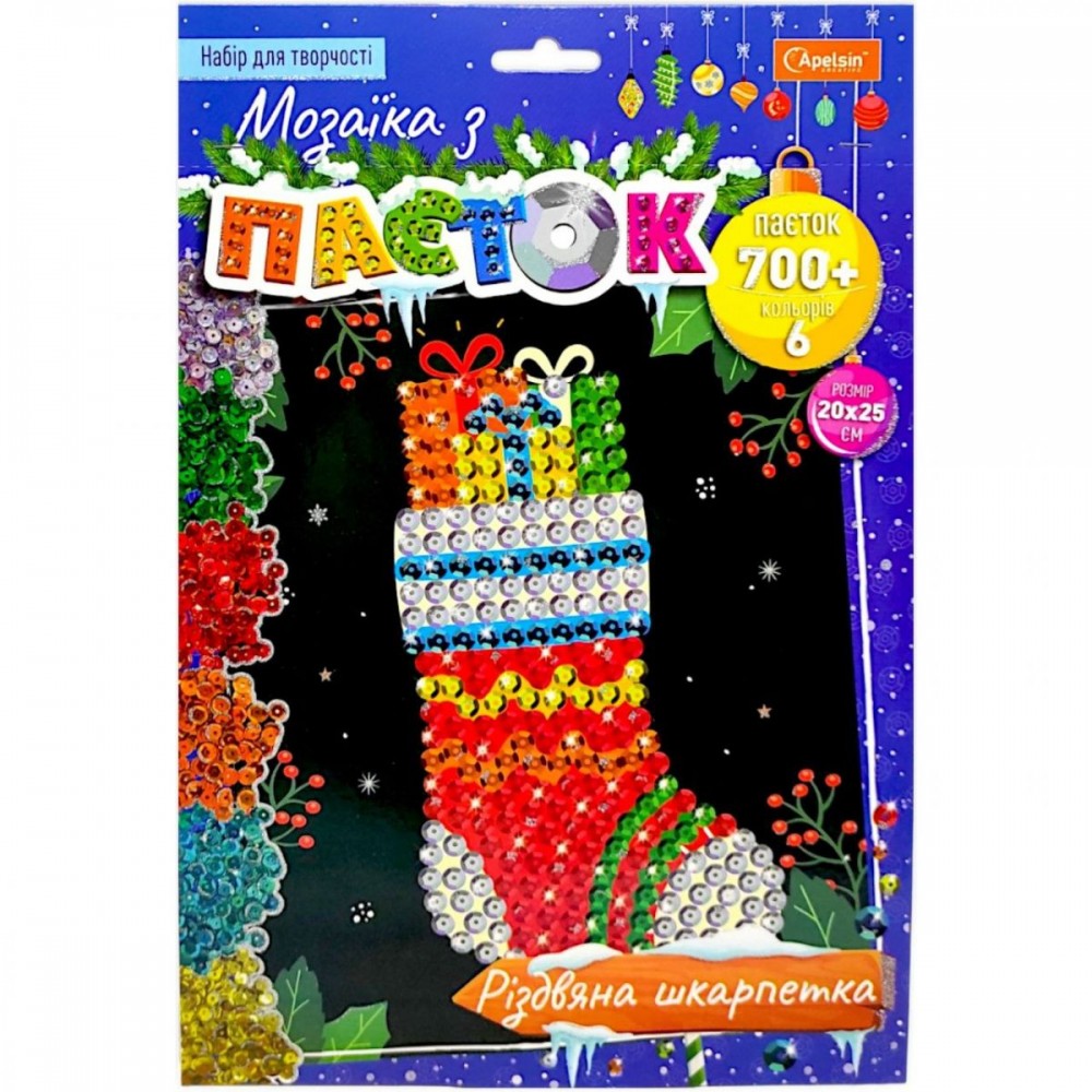 Набор для создания картины из паеток. С помощью данного набора можно создать красивую мозаику, которая станет отличным украшением интерьера детской комнаты. Принцип создания картины подобен созданию алмазной мозаики: паетки разных цветов следует размещать по соответствующим ячейкам. Размер изделия: 20х25 см.