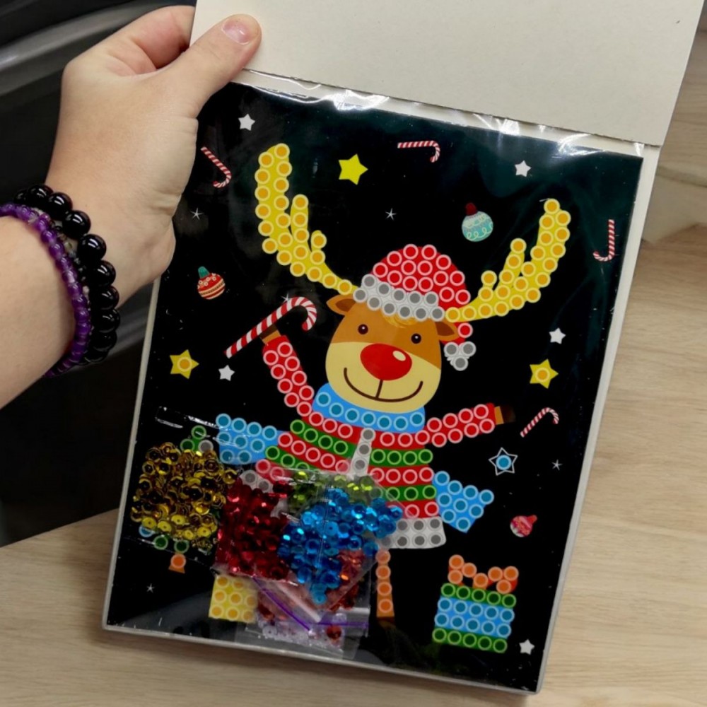 Набор для создания картины из паеток. С помощью данного набора можно создать красивую мозаику, которая станет отличным украшением интерьера детской комнаты. Принцип создания картины подобен созданию алмазной мозаики: паетки разных цветов следует размещать по соответствующим ячейкам. Размер изделия: 20х25 см.