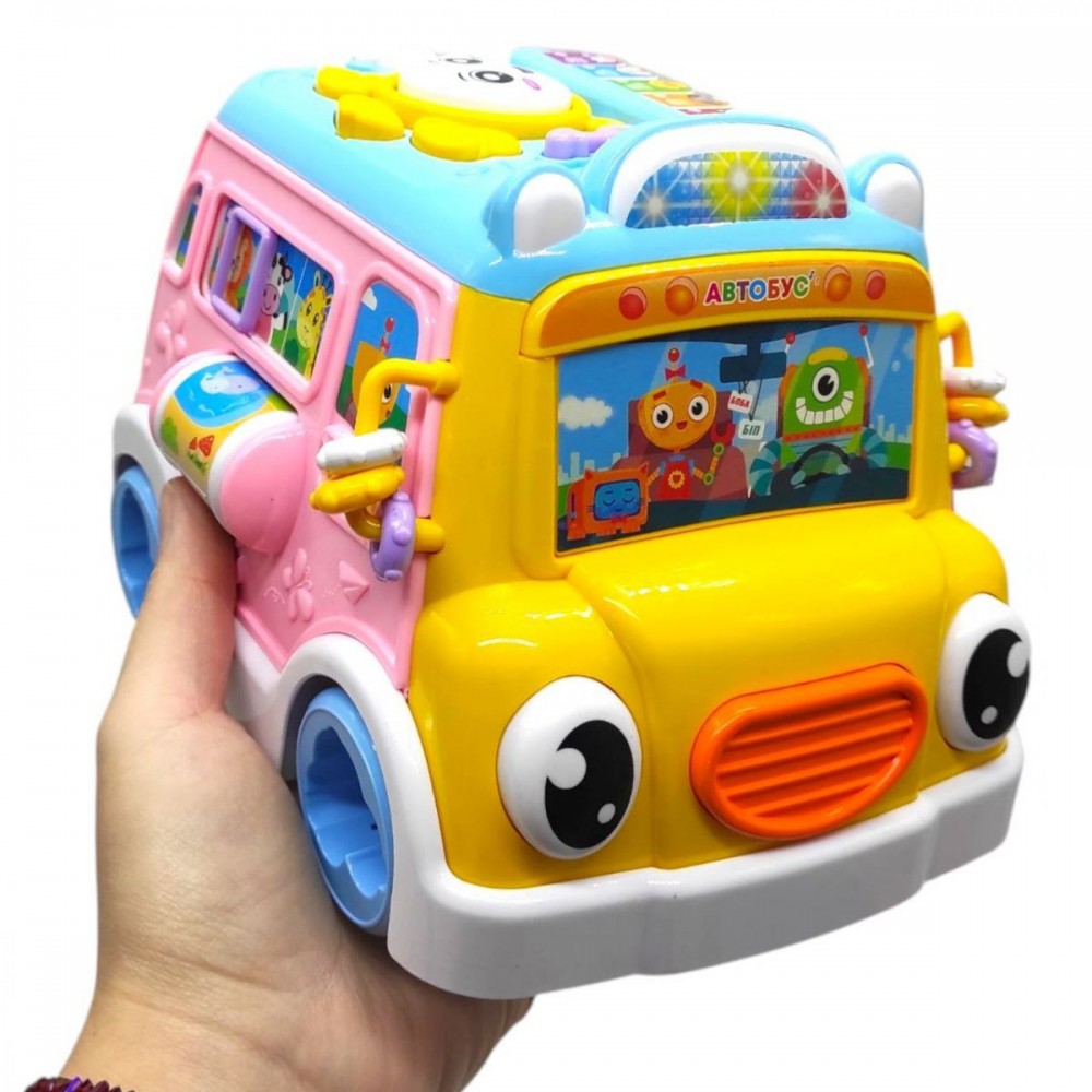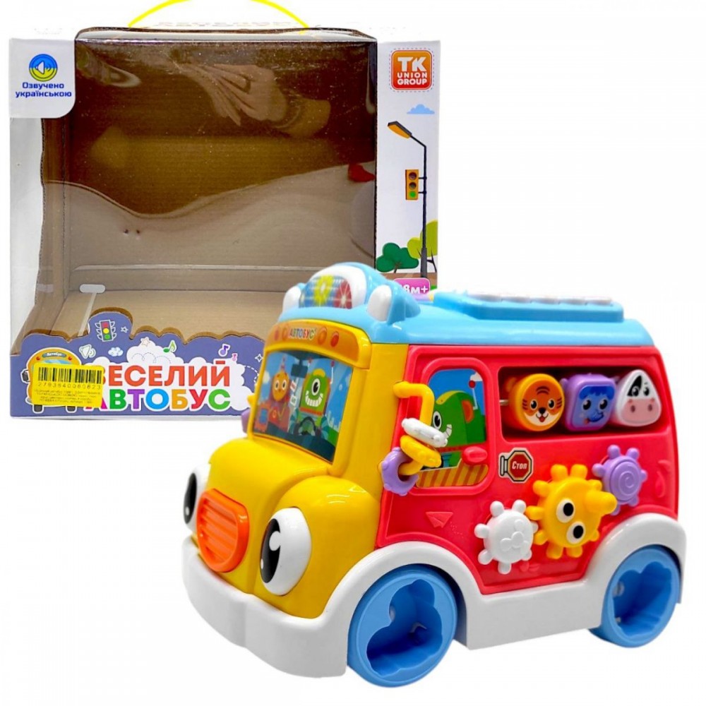 Интернет-магазин eToys предлагает вашему вниманию товар "Музыкальный автобус озвучка на украинском, сказки, песни, стихи, шестерни, сортер, в коробке (голубая крыша)" по цене 876 грн..