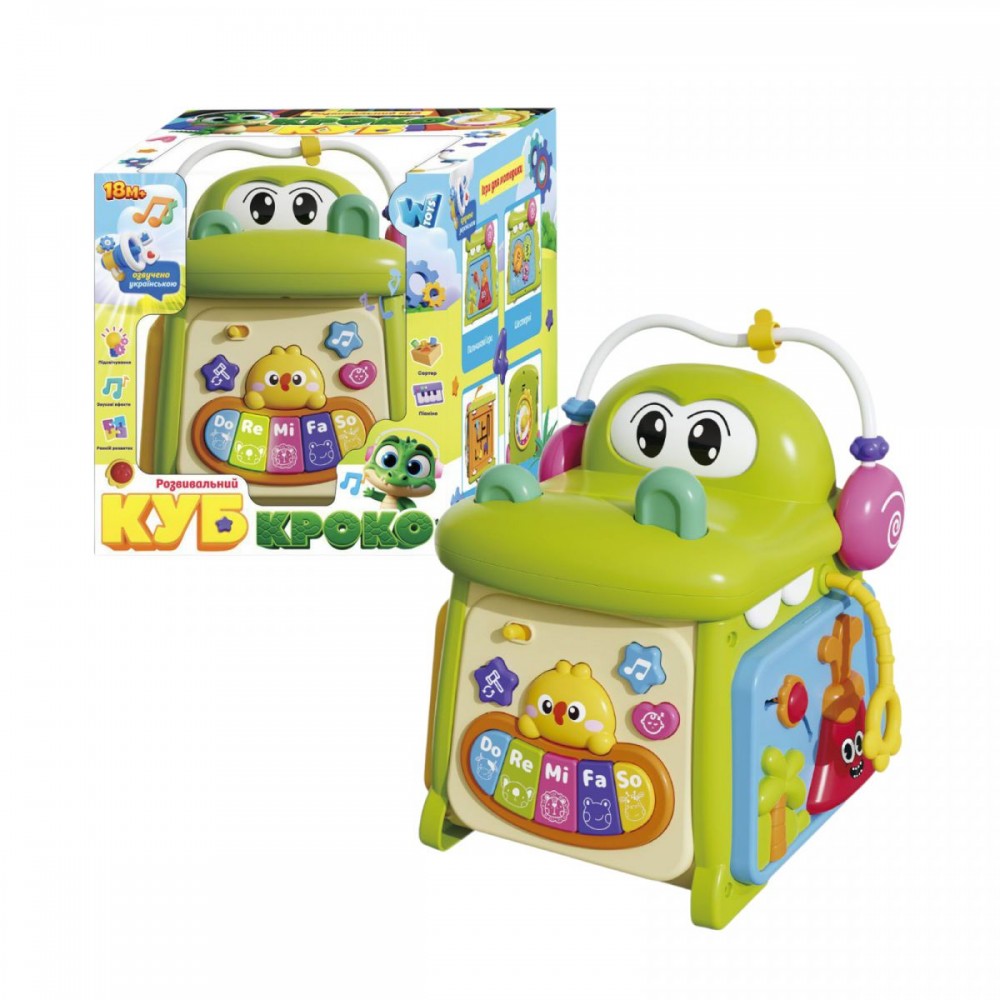 Интернет-магазин eToys предлагает вашему вниманию товар "Музыкальный мультибокс "Кроко Куб", ОСВУЧЕНИЕ УКРАИНСКИМ ЯЗЫКОМ, песенки, ноты, загадки, названия животных, их звуки, стишки, подсветки, пальчиковые игры, в коробке" по цене 1 135 грн..