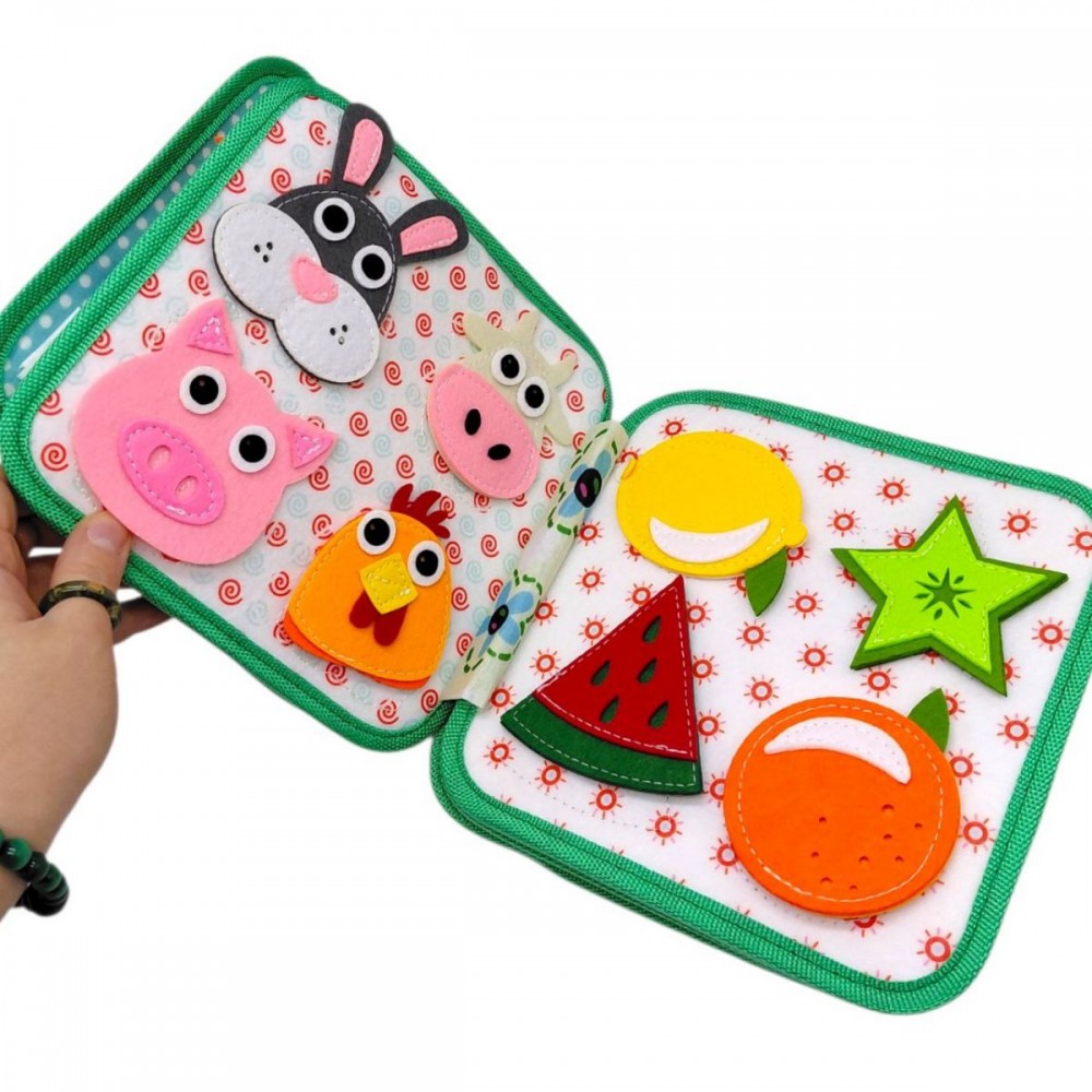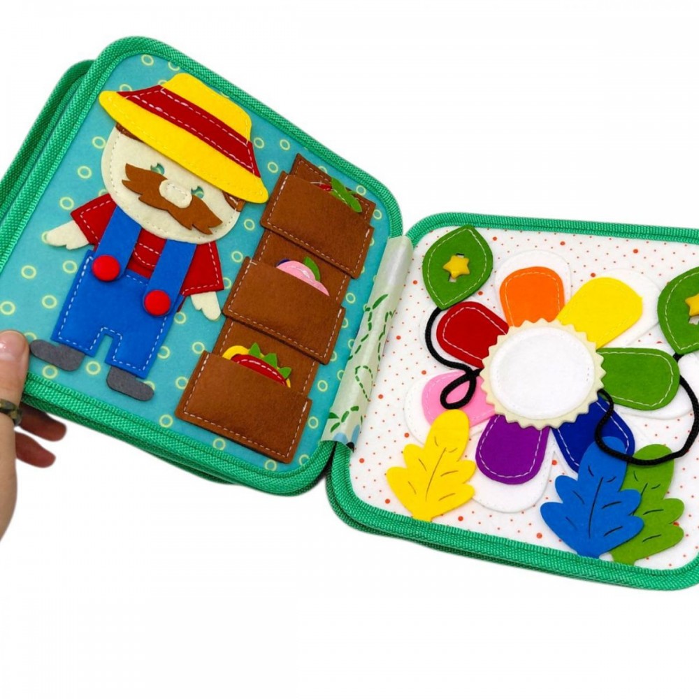 Интернет-магазин eToys предлагает вашему вниманию товар "Мягкая книга бизиборд (фетр, бусины, прозрачный карман, цифры, элементы на липучках и кнопках, овощи, фрукты, насекомые)" по цене 780 грн..