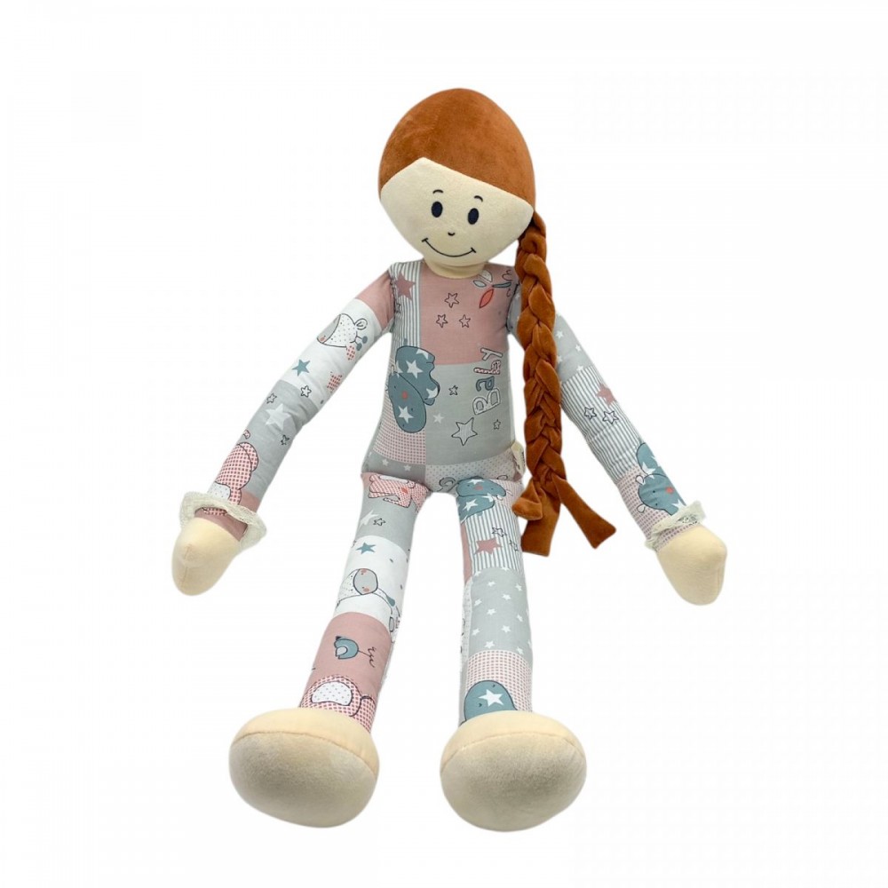 Мягкая кукла-обнимашка - это нежная игрушка в виде девочки, которая предназначена для обнимания и приносит тепло и уют. Она изготовлена из мягкого текстиля, имеет приятную на ощупь текстуру. Стилизованный под пижаму наряд и длинную косу. Размер куклы – 100 см.