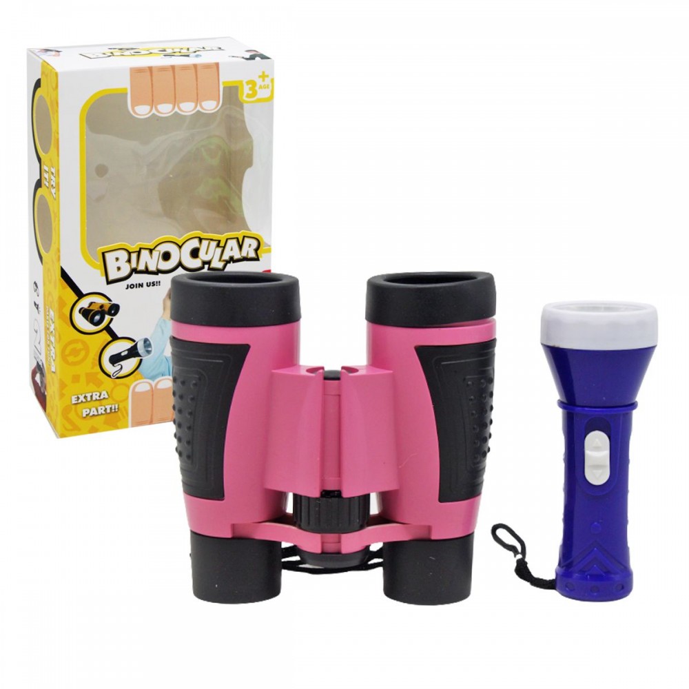 Детский игровой набор включает в себя: бинокль и фонарик. Бинокль приближает в несколько раз, имеет удобную веревочку с помощью которой его легко можно повесить на шею. Фонарик имеет яркий свет. Комплект изготовлен из прочного нетоксичного пластика.
