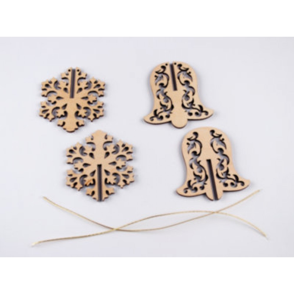 Деревянные новогодние игрушки "3D Набор" (2 фигурки). Набор состоит из 4 деталей, собрав и раскрасив которые, получатся красивые елочные игрушки.