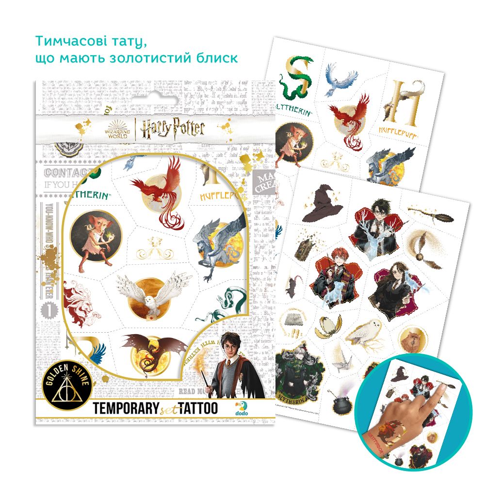 Набор детских временных татуировок из двух листов формата А5 по мотивам легендарной вселенной Гарри Поттера — это отличный способ порадовать маленьких фанатов магии и приключений! Внутри — яркие изображения героев, символов факультетов, волшебных палочек, Хогвартса и других культовых элементов. Тату легко наносятся и безопасны для детской кожи. Идеально подходят для праздников, тематических вечеринок и игр.