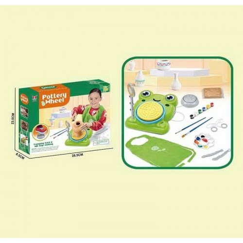 Интернет-магазин eToys предлагает вашему вниманию товар "Набор для гончарства "Лягушка" электрический круг для гончарства, от сети, глина, инструменты, краски, палитра, кисточки, фартук, в коробке" по цене 886 грн..