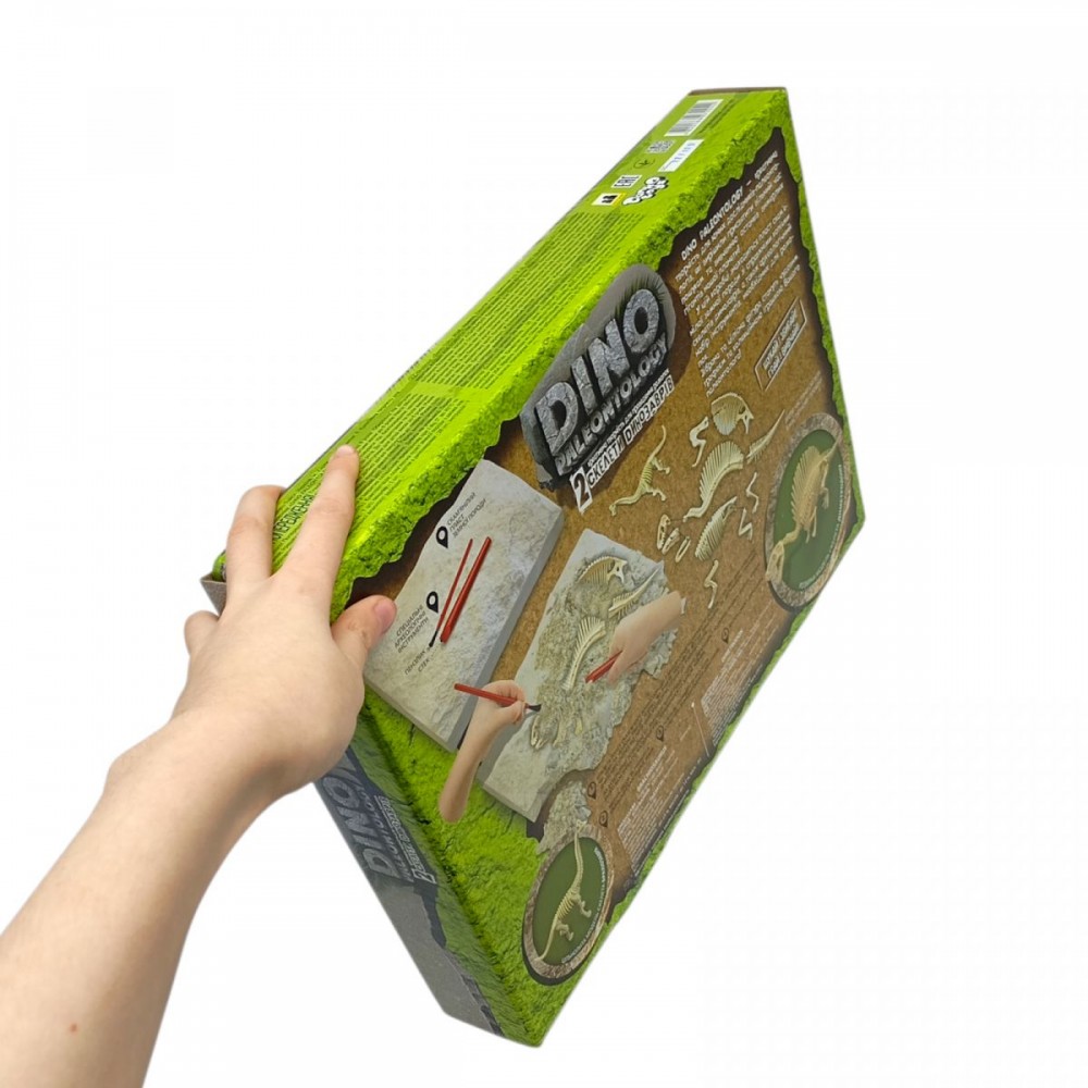 Набор для проведения раскопок "DINO PALEONTOLOGY". В этой коробке находится пласт окаменелой земной породы с настоящими копиями скелетов динозавров, а также археологический набор инструментов, необходимых для проведения раскопок. Красочная инструкция, поможет правильно подойти к процессу раскопок и в увлекательной игровой форме поведает вам о некоторых исторических фактах, найденных динозавров!_
