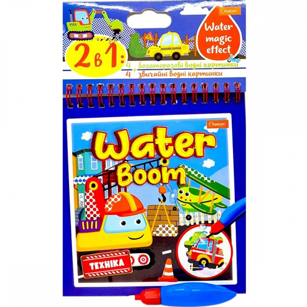 Набор для рисования Water Boom – это интересный творческий блокнот для детей, объединяющий сразу два формата рисования. В комплекте предусмотрены страницы для водного окрашивания и классические страницы для разрисовки цветными карандашами. При использовании водного маркера изображение проявляется на страницах, создавая эффект волшебного рисунка.