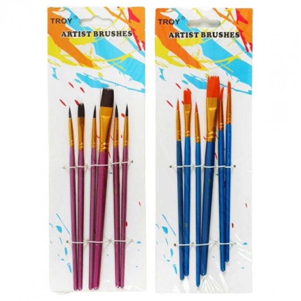В наборе представлены 6 кистей различных форм и размеров, что позволяет вам подобрать идеальный инструмент для различных техник и стилей рисования. От тонких деталей до широких мазков – у вас всегда будет подходящая кисть под рукой. Предназначены для рисования акварелью, маслом или акрилом. Выполнены из дерева, алюминия и нейлона. Разные цвета в ассортименте.