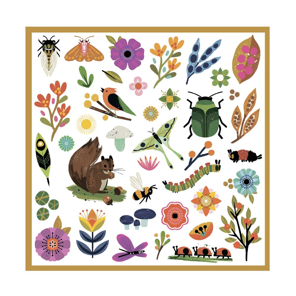 Набор из 160 наклеек на тему сада и его маленьких обитателей. Белки, бабочки, гусеницы, цветы и многое другое. Дети могут располагать наклейки как угодно, создавая красивые сценки, или использовать их для украшения чего угодно!