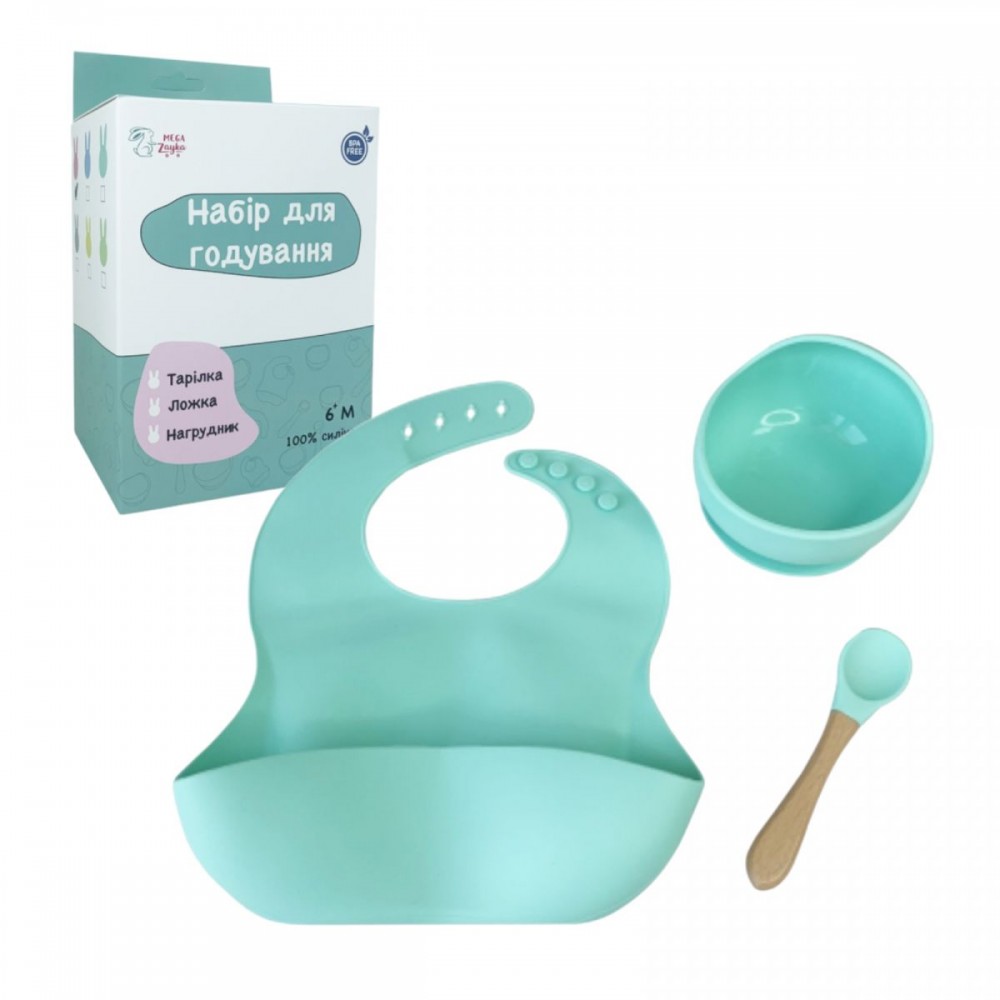 В такой тарелке можно подавать разные блюда по температуре и консистенции. Благодаря большой присоске на дне тарелка надежно фиксируется на поверхности стола, Эргономичная ложечка позволяет родителям кормить малыша максимально удобно. Материал тарелочки – пищевой силикон – вполне безопасен для ребенка и качественный в повседневном использовании. Силикон — это не бьющийся, не трескающийся материал, не изменяющий цвет. Объем тарелки – 300 мл. В комплекте идет деревянная ложка и силиконовый слюнявчик. За набором легко ухаживать, достаточно просто помыть под теплой водой с детским моющим, можно дезинфицировать, ставить в посудомоечную машину и микроволновку. Рекомендовано для детей от 6 месяцев.
