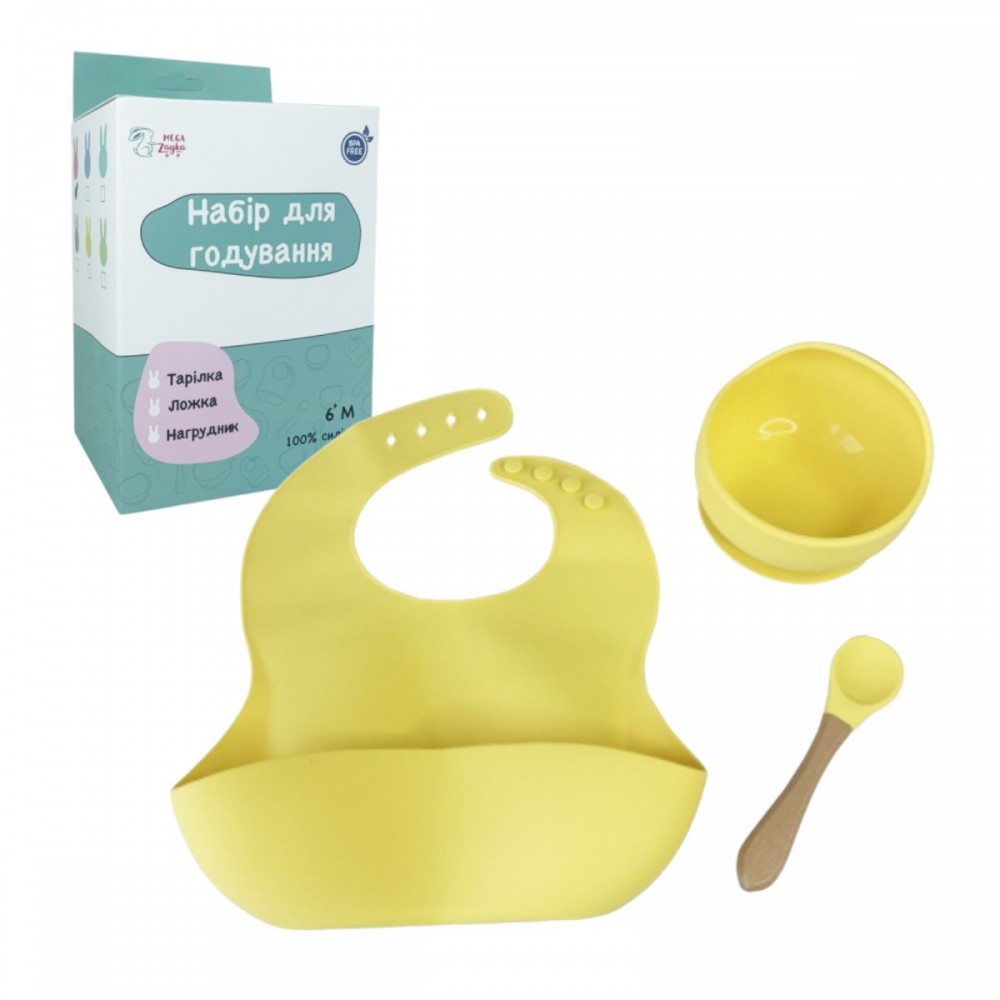 В такой тарелке можно подавать разные блюда по температуре и консистенции. Благодаря большой присоске на дне тарелка надежно фиксируется на поверхности стола, Эргономичная ложечка позволяет родителям кормить малыша максимально удобно. Материал тарелочки – пищевой силикон – вполне безопасен для ребенка и качественный в повседневном использовании. Силикон — это не бьющийся, не трескающийся материал, не изменяющий цвет. Объем тарелки – 300 мл. В комплекте идет деревянная ложка и силиконовый слюнявчик. За набором легко ухаживать, достаточно просто помыть под теплой водой с детским моющим, можно дезинфицировать, ставить в посудомоечную машину и микроволновку. Рекомендовано для детей от 6 месяцев.