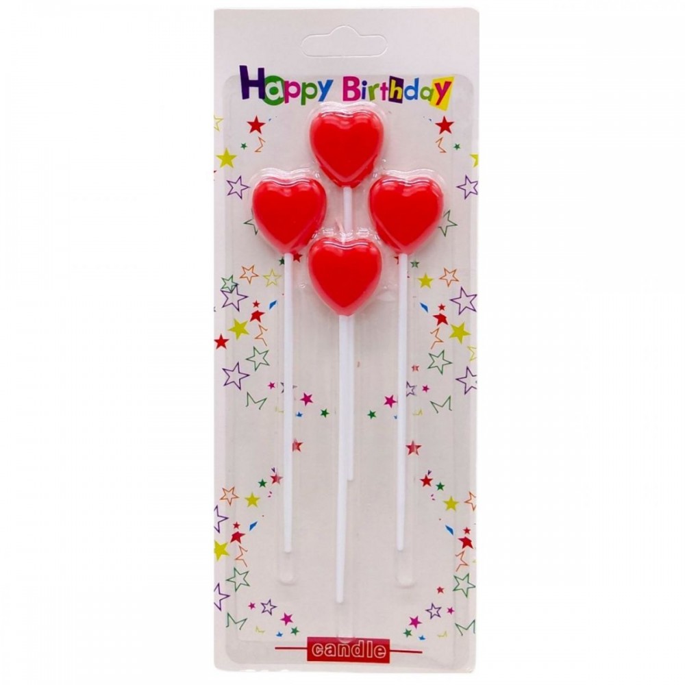 Свічки для торта у формі сердець — 4 шт., Пластикові тримачі (вбудовані)