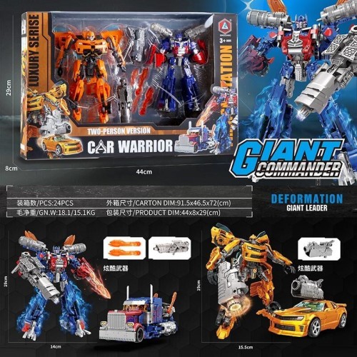 Трансформер – это фантастическая игрушка, способная изменять свою форму. Эта уникальная способность позволяет ему эффективно использоваться в разных игровых сюжетах. Ключевым аспектом трансформера является его способность мгновенно адаптироваться к разным обстоятельствам, изменяя свою форму в зависимости от потребностей пользователя. Трансформеры стали популярными персонажами в литературе, кино и играх благодаря своей увлекательной концепции и необычному дизайну. В данном наборе есть 2 трансформера (Оптимус Прайм и Бамблби). Каждый из них можно вручную трансформировать из робота в машину и наоборот. Высота робота – 20 см. Выполнено из качественного, прочного пластика. Для детей старше 3-х лет.