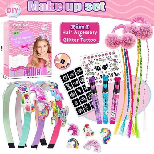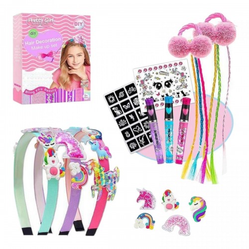 Интернет-магазин eToys предлагает вашему вниманию товар "Набор украшений 3 обруча, 3 ручки с блестками, прядки, резинки, декоративные элементы, двусторонние наклейки-фиксаторы, в коробке" по цене 412 грн..