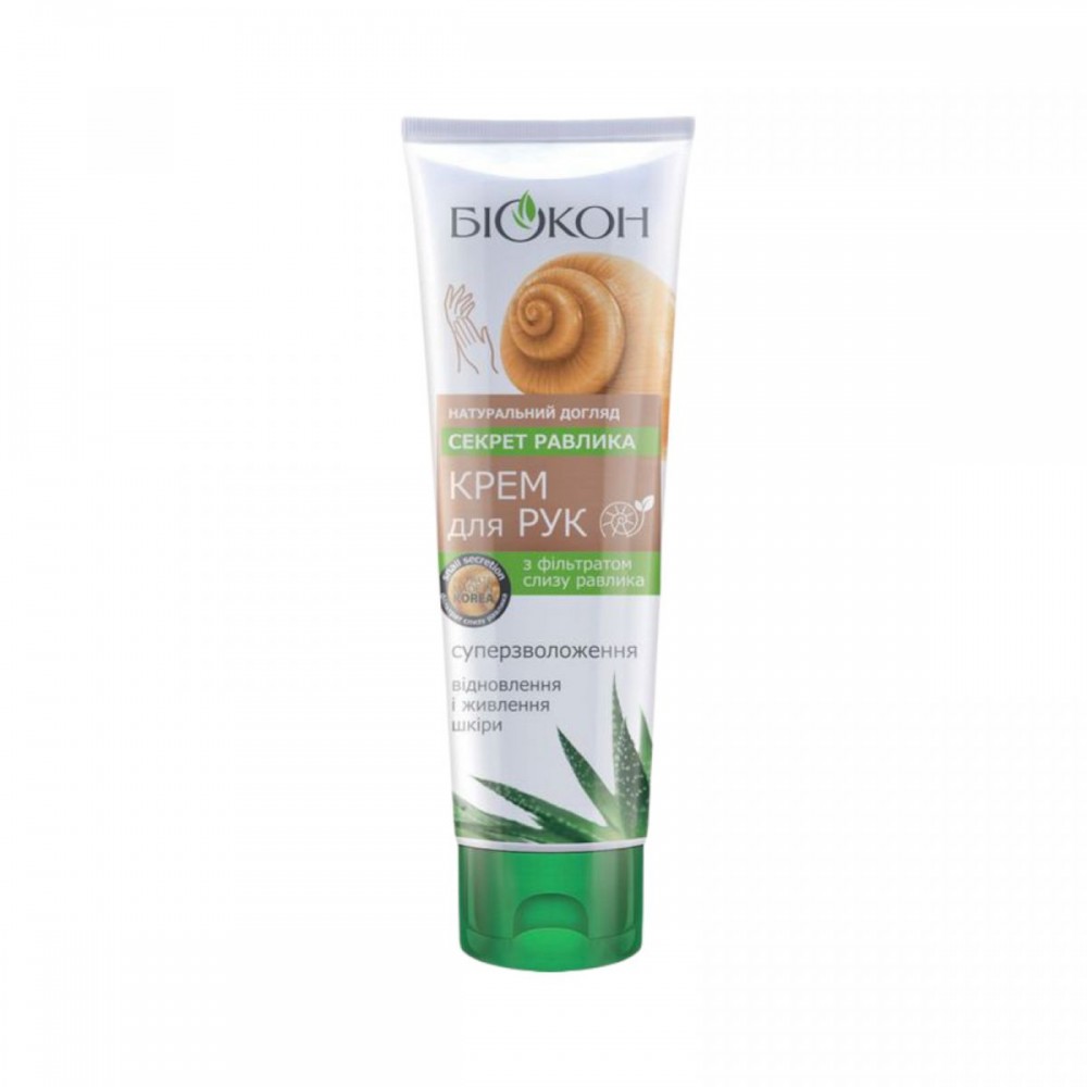 Крем для рук Секрет улитки из серии Натуральный уход. Содержит фильтрат слизи улитки гигантской (Achatina fulica), богатый биоактивными веществами (муцин, аллантоин, коллаген, витамины). Интенсивно увлажняет, смягчает, питает кожу рук. Благодаря регенерирующим и успокаивающим свойствам слизи улитка крем способствует быстрому восстановлению кожи рук и борется с факторами преждевременного старения. Делает кожу более нежной и гладкой.