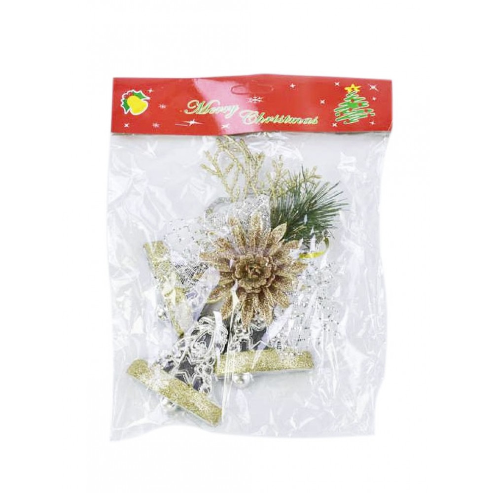 Красивое новогоднее украшение с колокольчиком. Украшено блестками и бантиком.